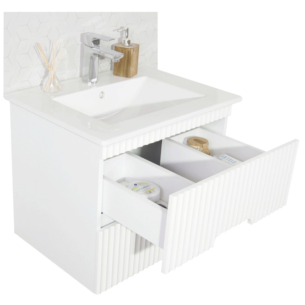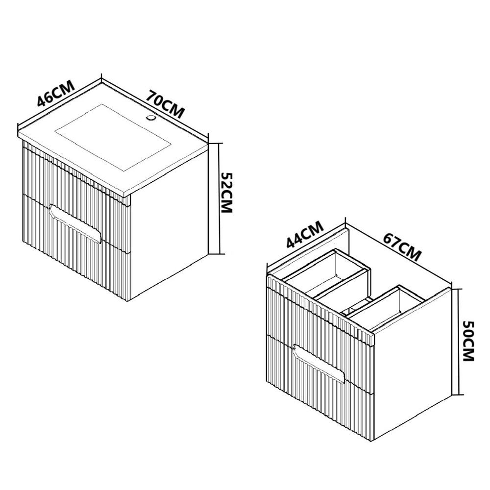 Baza si lavoar ceramic GN0091, mobilier baie suspendat 70 cm, dreptunghiular, front MDF, sertare soft close, alb