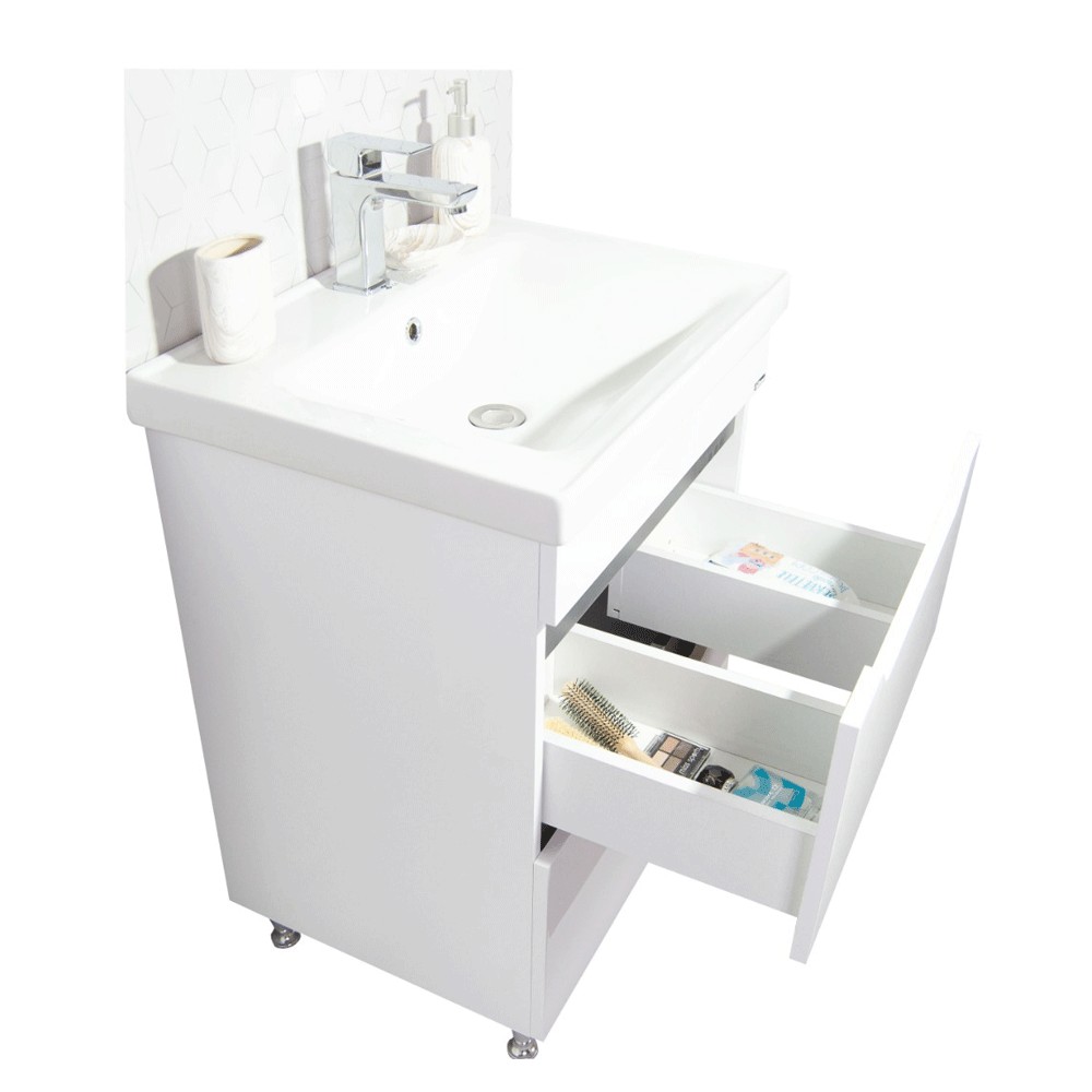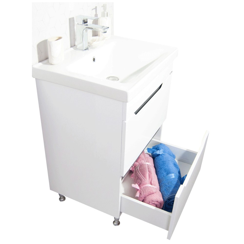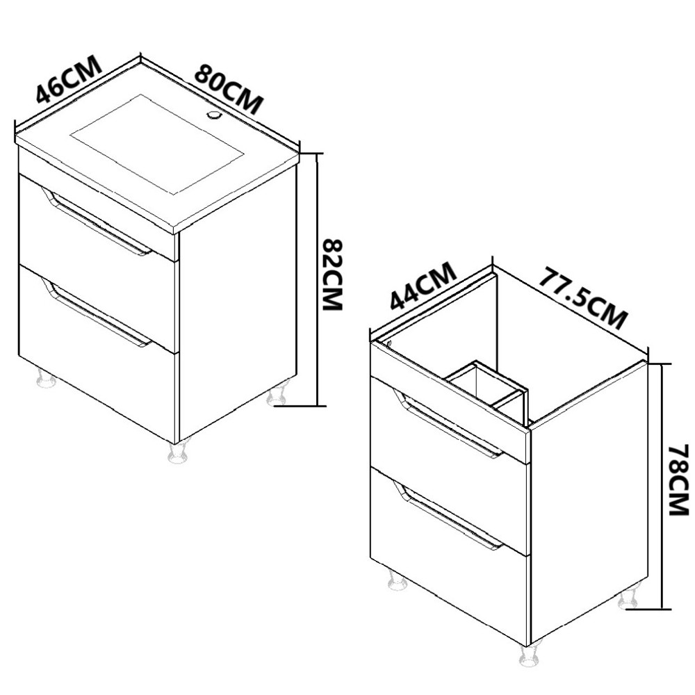 Baza si lavoar ceramic GN7561, mobilier baie stativ 80 cm, circular, front MDF, 2 sertare, picioare cromate reglabile, alb/antracit