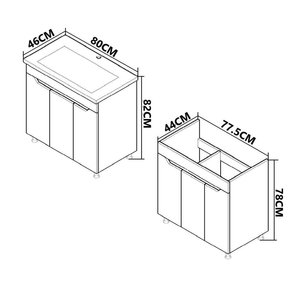 Baza si lavoar ceramic GN7561, mobilier baie stativ 80 cm, circular, front MDF, 3 usi, 2 rafturi, picioare cromate reglabile, alb/antracit