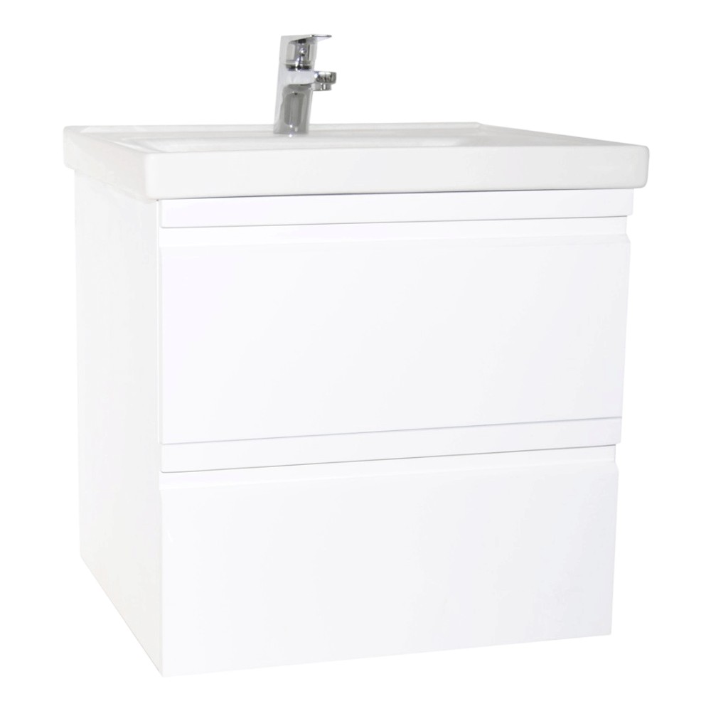 Transforma-ti baia intr-un spatiu modern, aerisit si practic cu setul de mobilier suspendat GN7861, ideal pentru orice baie contemporana, indiferent de dimensiuni. Acest set complet, ce include baza suspendata cu doua sertare si lavoarul ceramic dreptunghiular integrat, este solutia perfecta pentru o organizare eficienta si un design elegant in spatiul tau de relaxare.