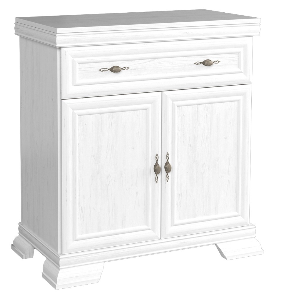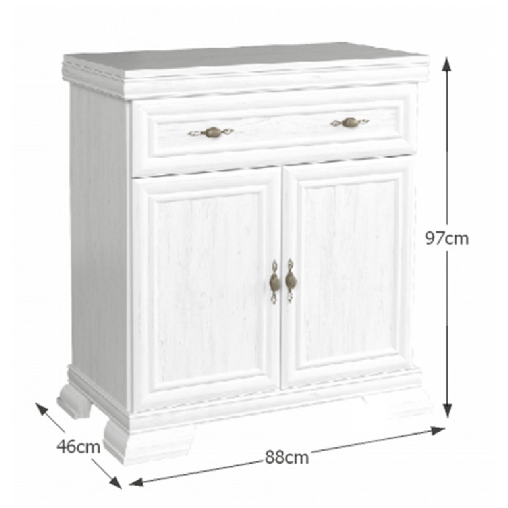 Fabricata din PAL Melaminat cu un panou din spate robust, butoane metalice aurii si un sertar care ruleaza pe glisiere, comoda VM1 imbogateste orice spatiu cu elemente clasice.Â
