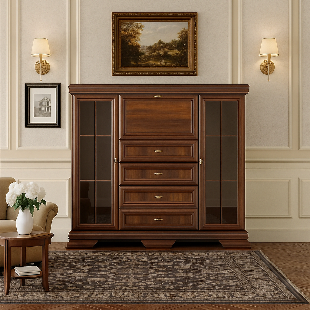 Multiplele spatii de depozitare (sertarele si politele acoperite cu geam ) va ajuta sa pastrati dezordinea sub control, depozitand toate hainele si accesoriile intr-un singur loc convenabil.Â
