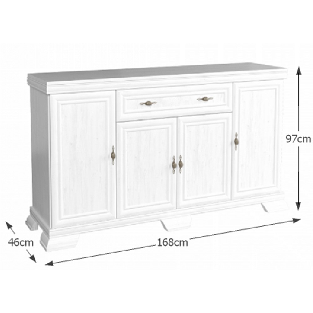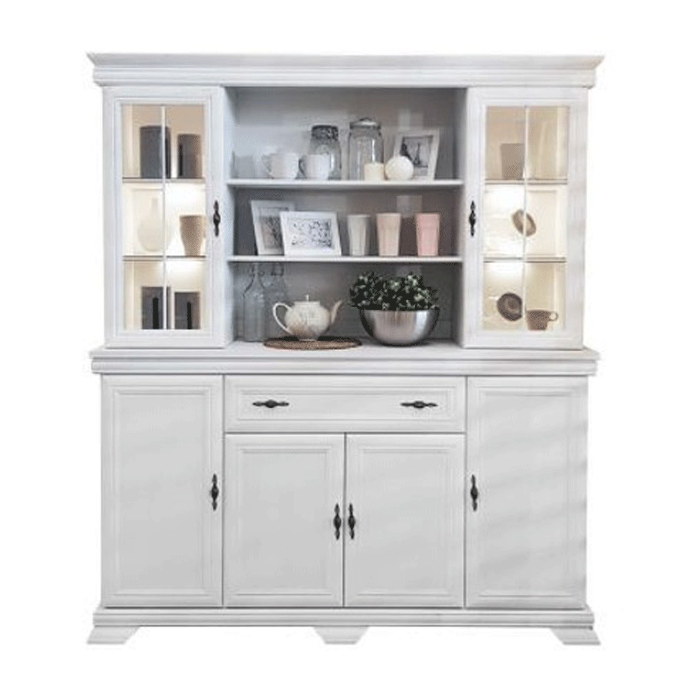 Mobilierul format din comoda living VM4 si vitrina VMN5 asigura spatiu generos pentru depozitare si confera un aer vintage pentru living, bucatarie sau hol.