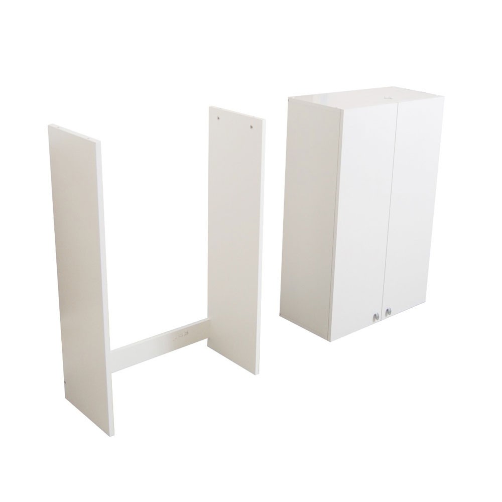 Mobilierul este prevazut cu spatiu pentru masina de spalat iar deasupra dispune de un dulap cu 2 usi . Interiorul dulapului este spatios si permite organizarea diferitelor produse si articole de igiena personala. Dispune de 2 polite in interior. Usa dulapului este prevazuta cu maner confortabil, in functie de disponibilitate manerele pot fi rotunde sau clasice.