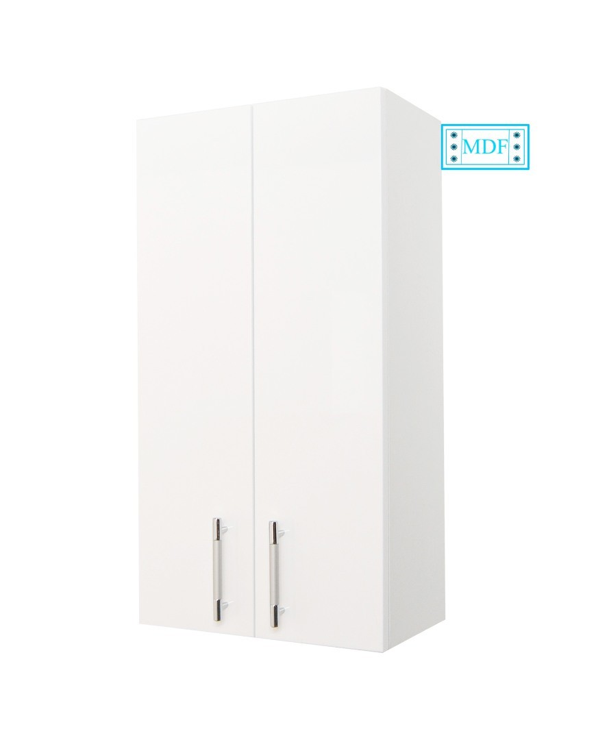 Dulapul de baie Roma se monteaza suspendat, pe perete si este realizat dintr-o combinatie de materiale ce asigura rezistenta la mediu umed: laterale din PAL si usi din MDF.