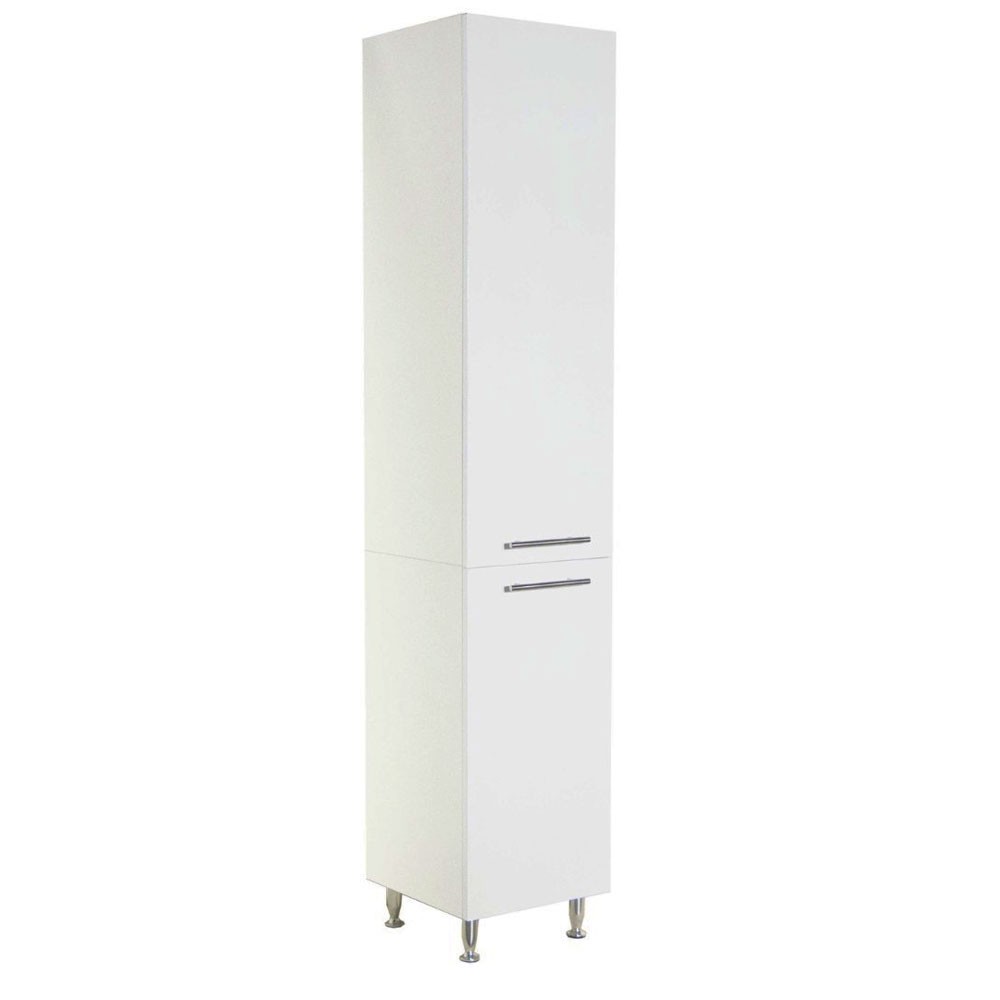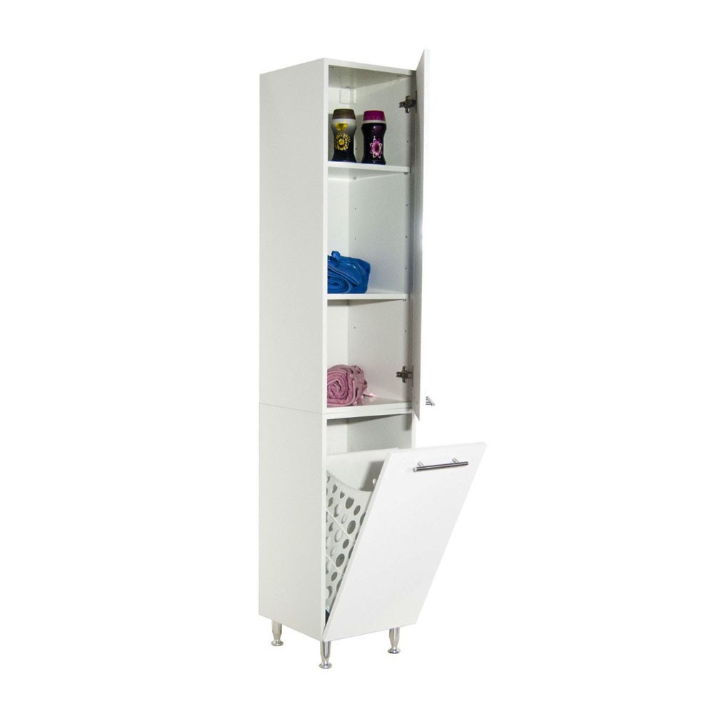 Dulapul de baie este cu picioare si este realizat dintr-o combinatie de materiale ce asigura rezistenta la mediu umed: Fata sa este realizata din placi PAL rezistente la apa, acoperite cu lac alb de inalta calitate. in profil sunt montate manere moderne.