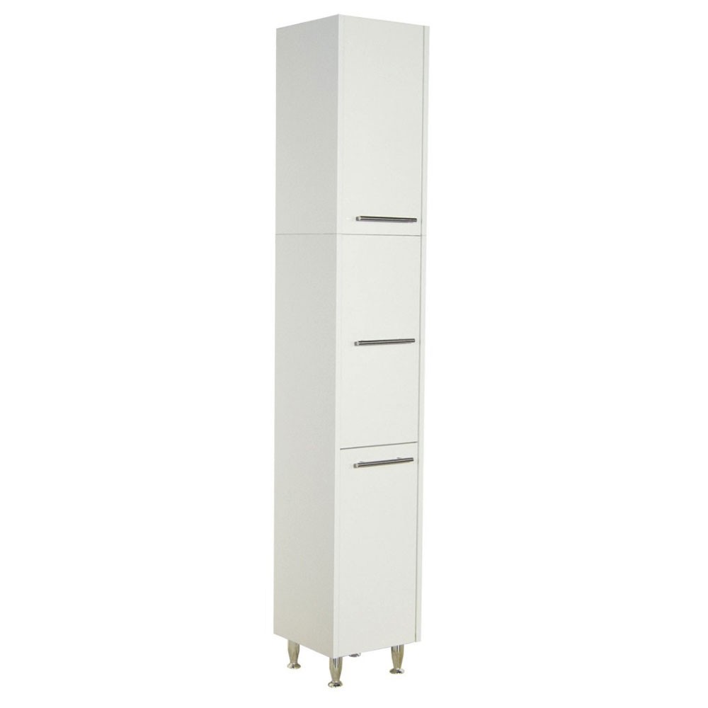 Dulapul de baie este cu picioare si este realizat din materiale ce asigura rezistenta la mediu umed: Fata sa este realizata din placi PAL lucios rezistente la apa, de inalta calitate. Are montate manere moderne. Dulapul inalt este dotat cu 6 spatii de depozitare si 3 usi care faciliteaza organizarea spatiului in fiecare baie