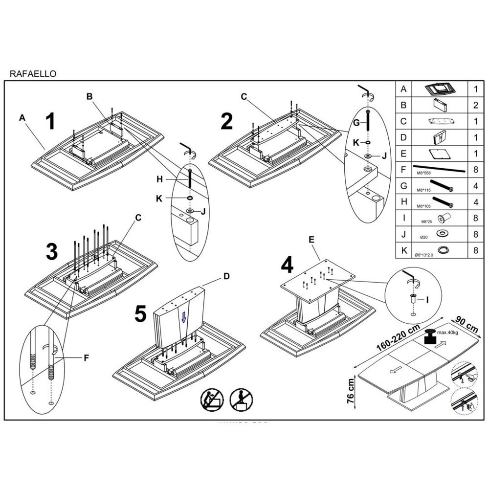 Dimensiuni- Latime 90 cm, lungime 160 - 220 cm, inaltime 76 cm