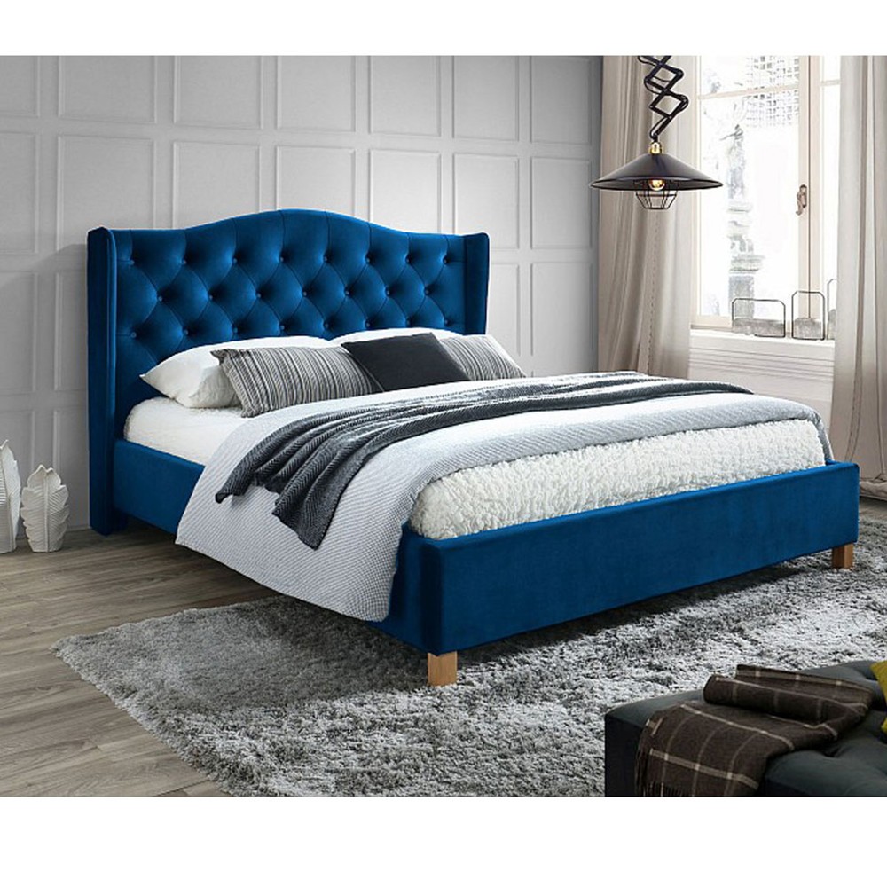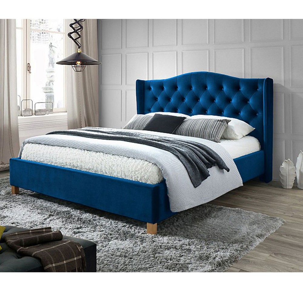 Pat SL Aspen, dublu, lemn masiv, tapitat cu catifea, cu somiera, 160x200, albastru