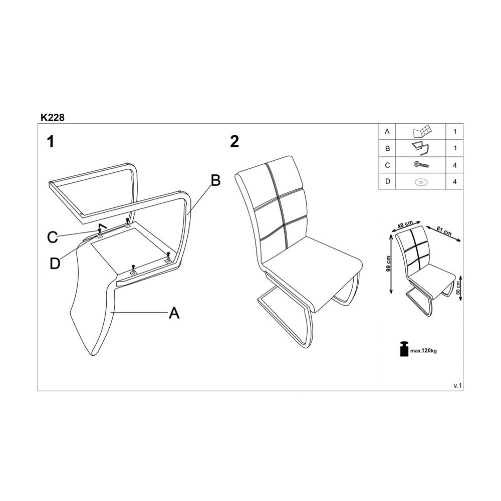 Scaunul K228 cu sezutul si spătarul tapitat cu piele ecologica iar picioarele din metal cromat, fac ca acest mobilier să fie nu numai de bun gust dar și elegant și foarte confortabil. Poate fi utilizat cu succes atat in living cat si intr-o bucatarie moderna