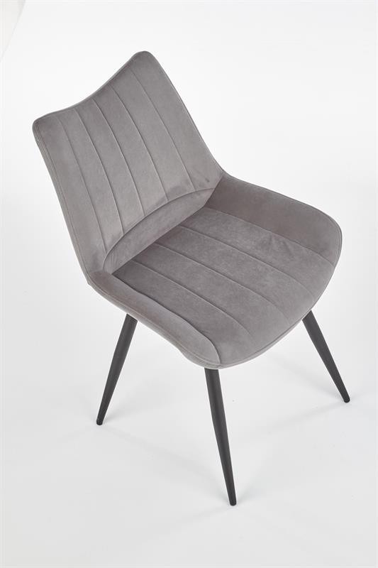 Acest scaun are structura metalica, imbracata in stofa gri. Pentru un grad de confort marit, sezutul este din spuma poliuretanica.
