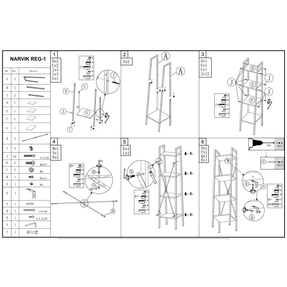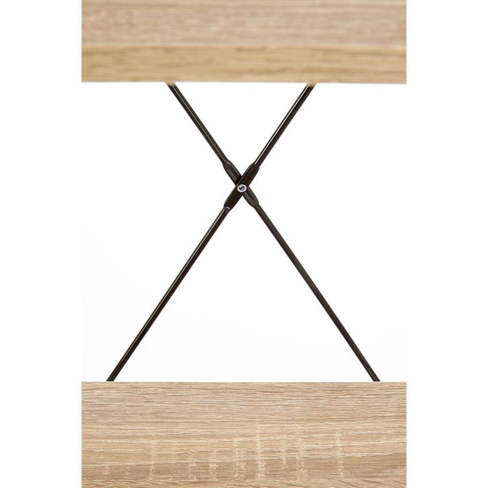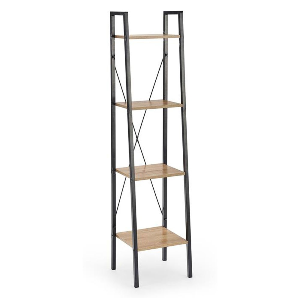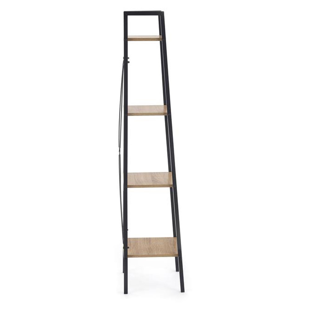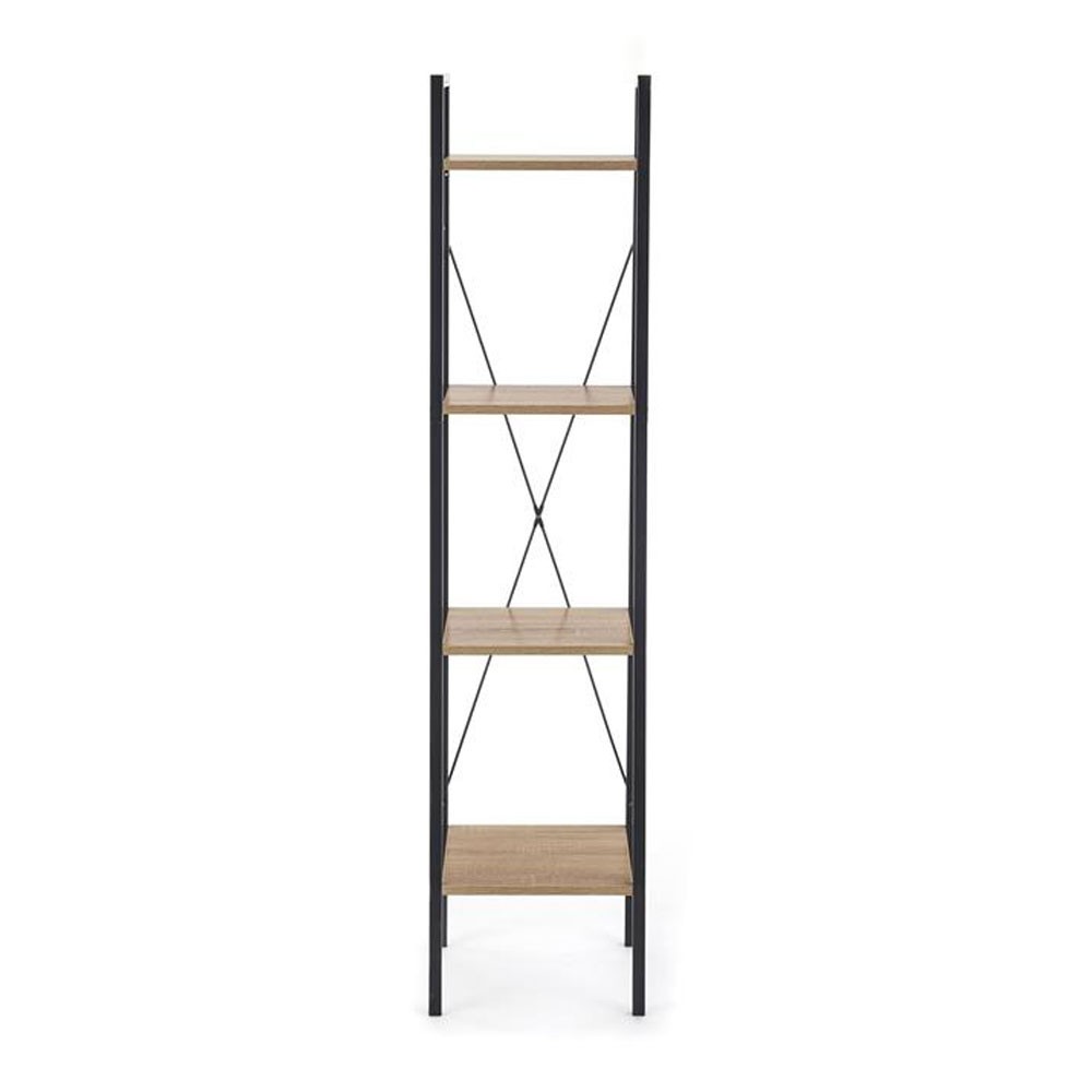 Are structura metalica de culoare neagra cu 4 polite din PAL culoare stejar sonoma si poate fi integrata in living, dormitor sau birou si ofera spatiu de se stocare si organizare generos.