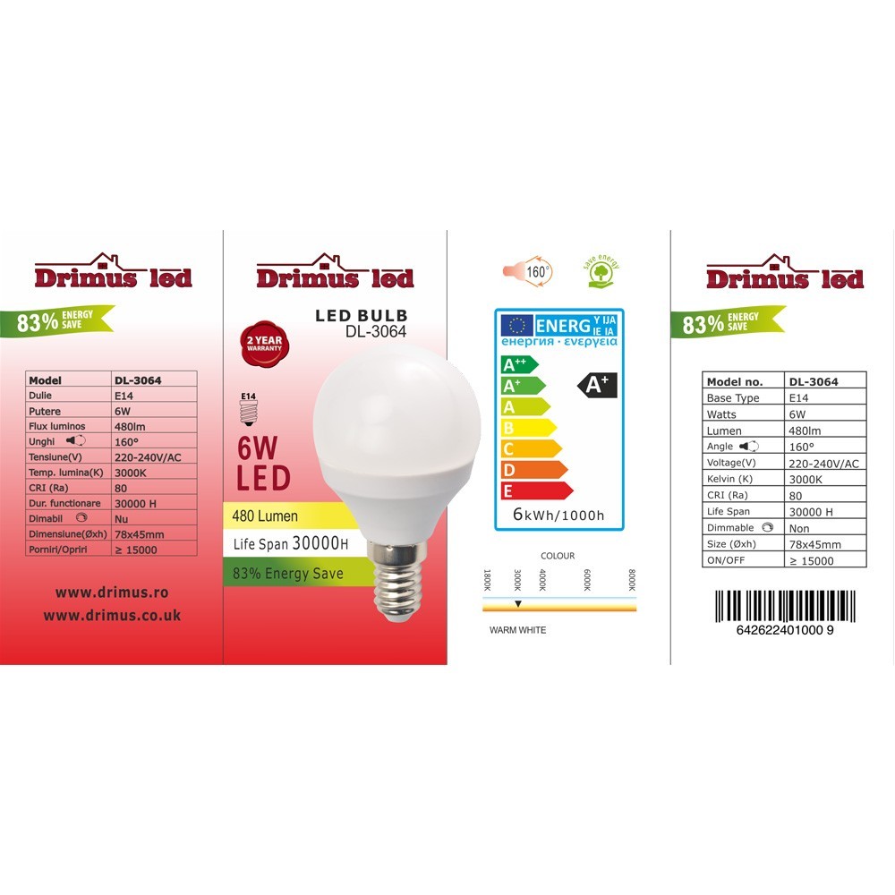 Set 6 x Bec led E14 6W cu lumina calda echivalenta unui bec clasic de 50W. Este un bec led care emite o lumina puternica la un consum minim de energie. In plus, becul led are o durata de viata foarte mare - pana la 30.000 de ore.