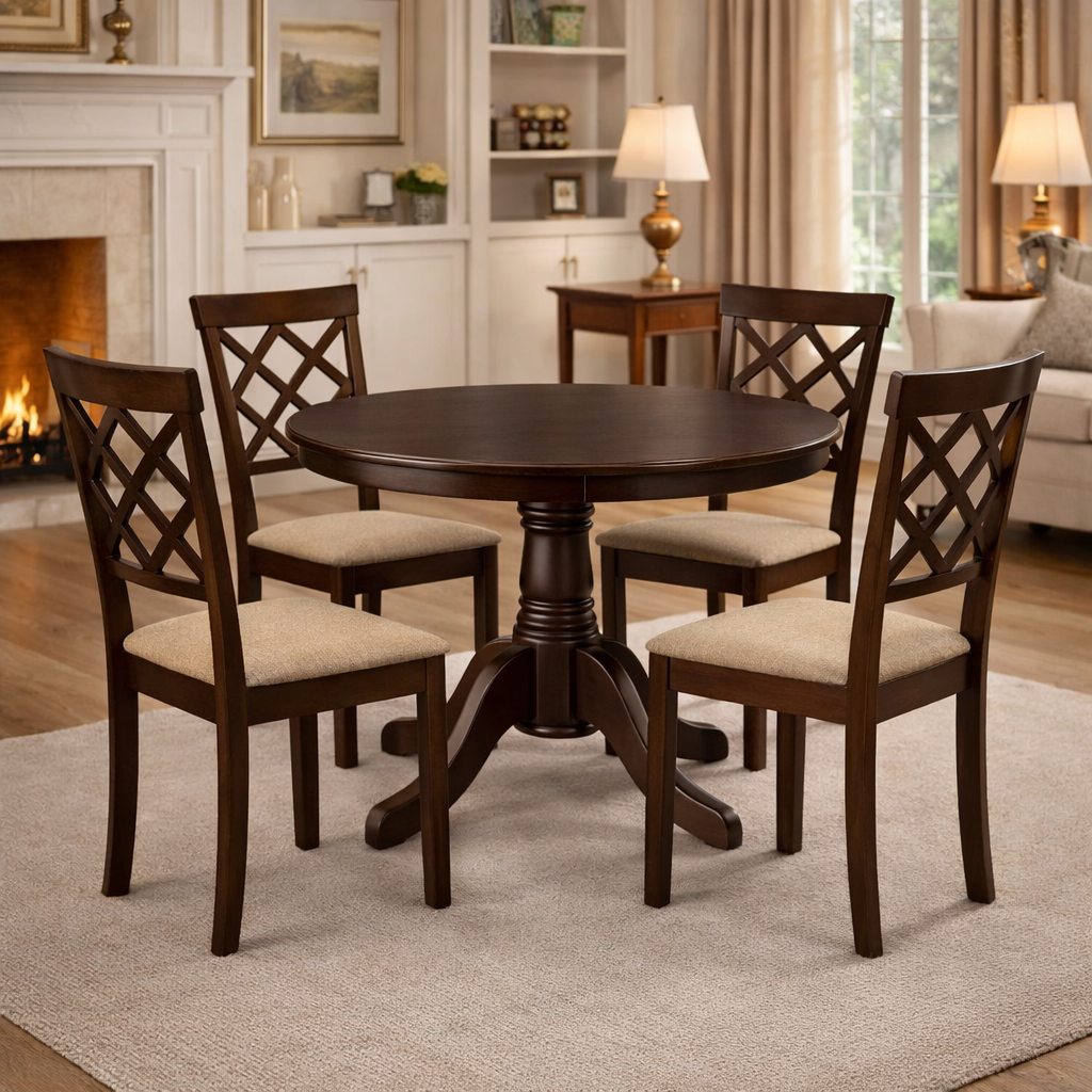 Masa Montreal impresioneaza prin forma sa rotunda, ce creeaza un ambient primitor si echilibrat, ideal pentru momente petrecute in familie sau alaturi de prieteni. Finisajul in culoare nuc adauga profunzime si eleganta, oferind un aspect natural si sofisticat care se integreaza usor in decoruri moderne, clasice sau rustice.
