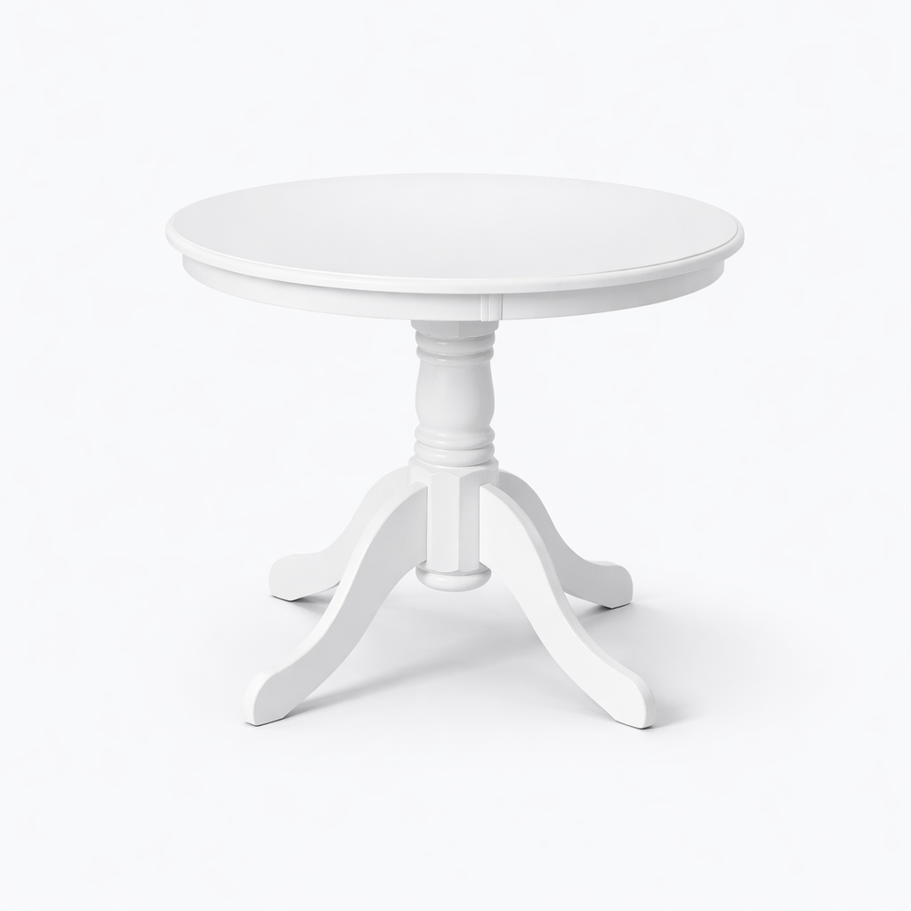 Masa rotunda Montreal imbina eleganta finisajului alb cu rezistenta lemnului masiv, oferind un design compact si versatil. Ideala pentru 4 persoane, este perfecta pentru orice spatiu din living sau bucatarie.