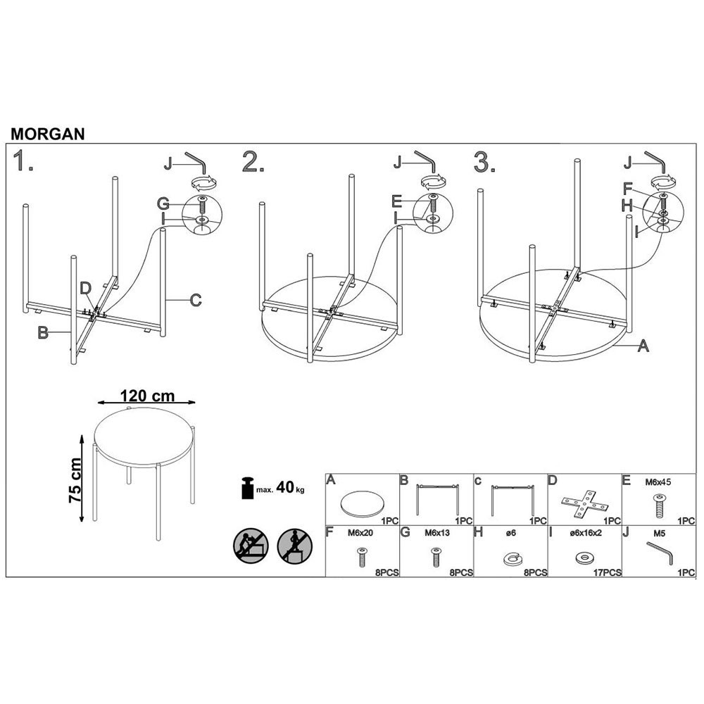 Blatul din MDF si picioarele din metal vopsit asigura stabilitatea si rezistenta mesei. Aceasta sustine o greutate de pana la 40 kg.