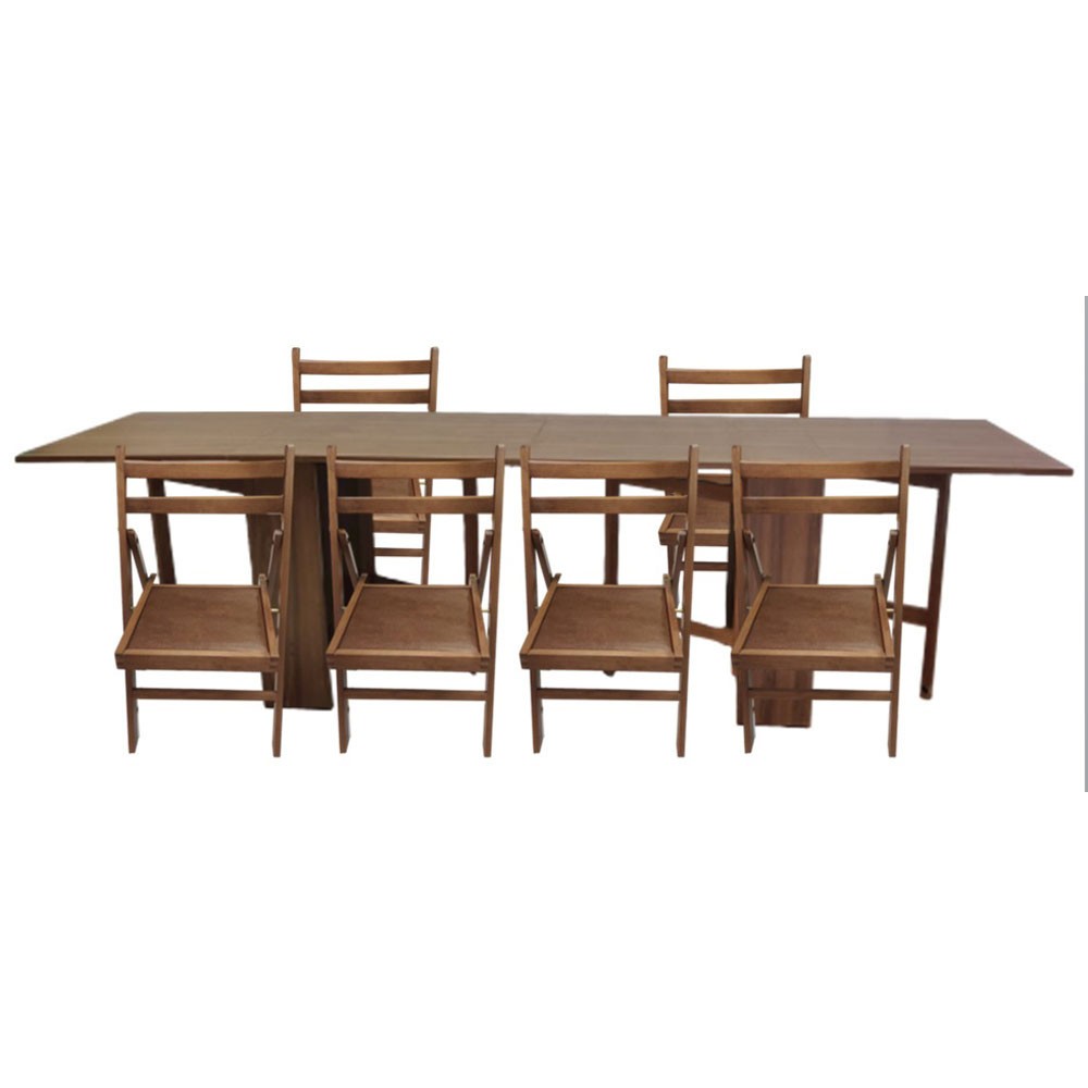 Set masa plianta 12 persoane, Pal Melaminat, insertii lemn masiv, 274x75x78 cm si 6 scaune pliante, tapiterie piele ecologica, fag