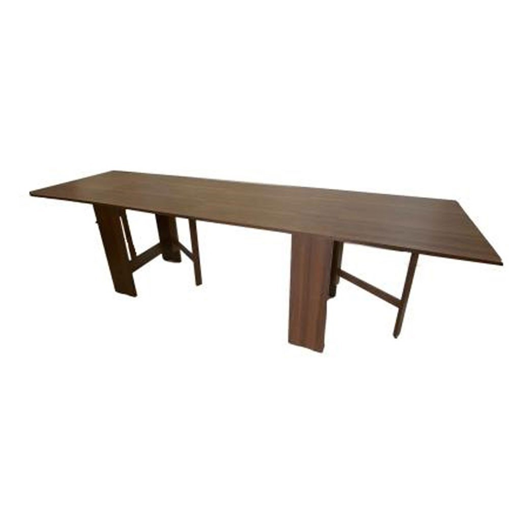 Set masa plianta 12 persoane, Pal Melaminat, insertii lemn masiv, 274x75x78 cm si 6 scaune pliante, tapiterie piele ecologica, wenge