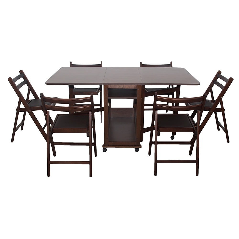 Set masa plianta Util cu 6 scaune pliante – este un set de mobilier pliabil, perfect pentru spatiile mici de bucatarie sau pentru living atunci cand aveti musafiri. Are un design atragator, este un set extrem de rezistent si practic.