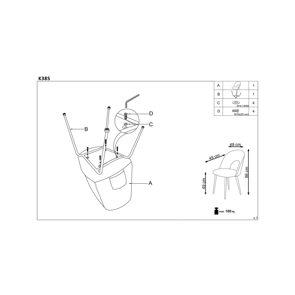 Scaunul K385 are sezutul si spatarul tapitat cu panza de catifea placuta la atingere iar picioarele de metal vopsit fac ca acest mobilier să fie nu numai de bun gust dar și elegant și foarte confortabil. Spatarul permite fluxului de aer sa circule pentru o utilizare cat mai placuta.