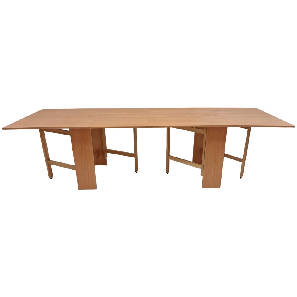 Aceasta masa plianta este foarte practica, ea fiind compusa din doua mese de 6 persoane, prinse intre ele cu sistem de cuplare metalic.