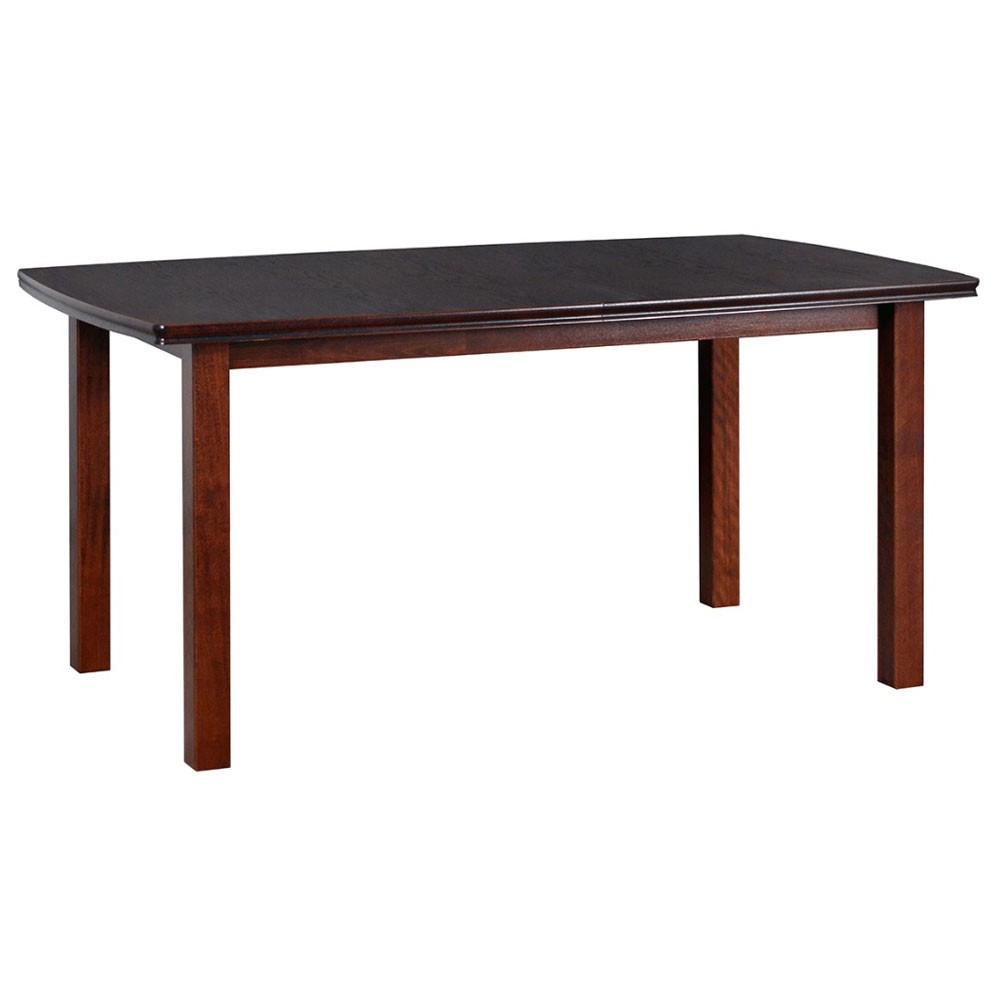 Masa extensibila Bent nuc cu blat din MDF furniruit  si structura din lemn masiv este o masa impunatoare, eleganta, potrivita incaperilor in stil clasic. Blaturile culiseaza pe sina metalica iar cand masa nu are extensia atasata, blaturi se prind cu un sistem metalic pentru a evita miscarea acestora.
