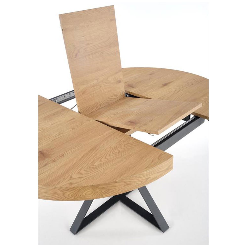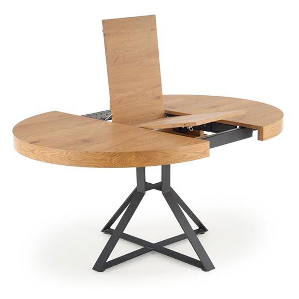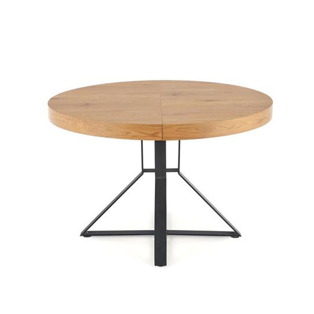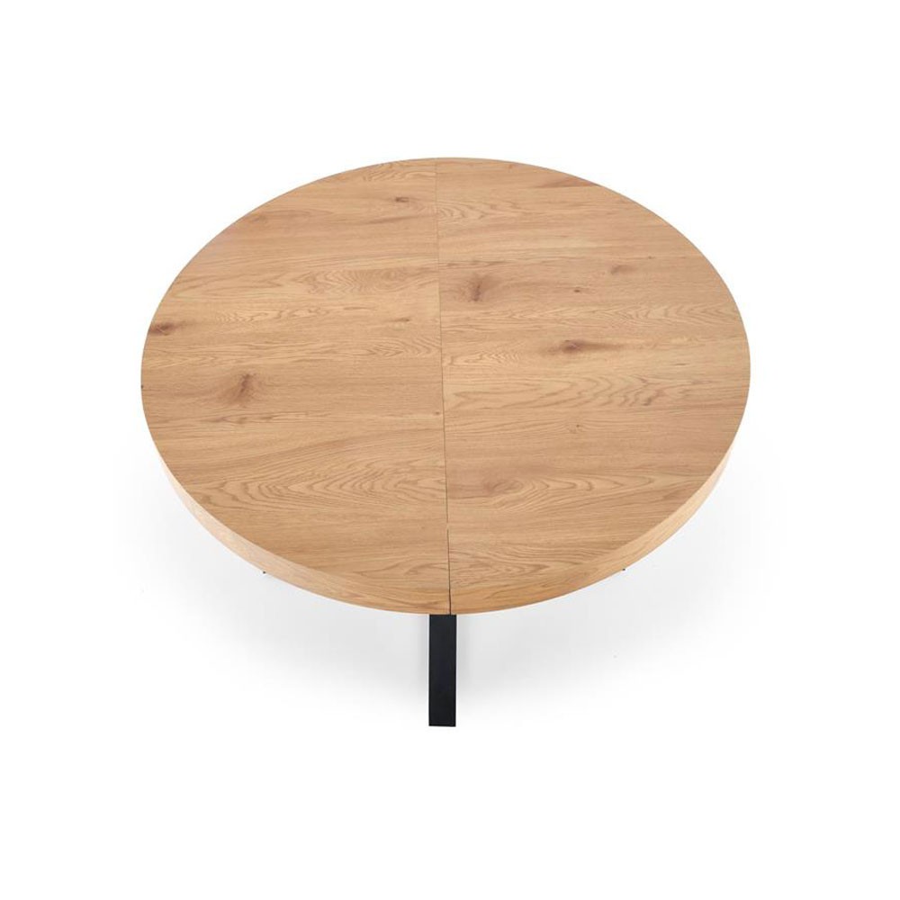Blatul are diametrul de 120 cm, este culoarea stejarului auriu pentru a crea un contrast placut vizual in combinatie cu picioarele de sprijin.