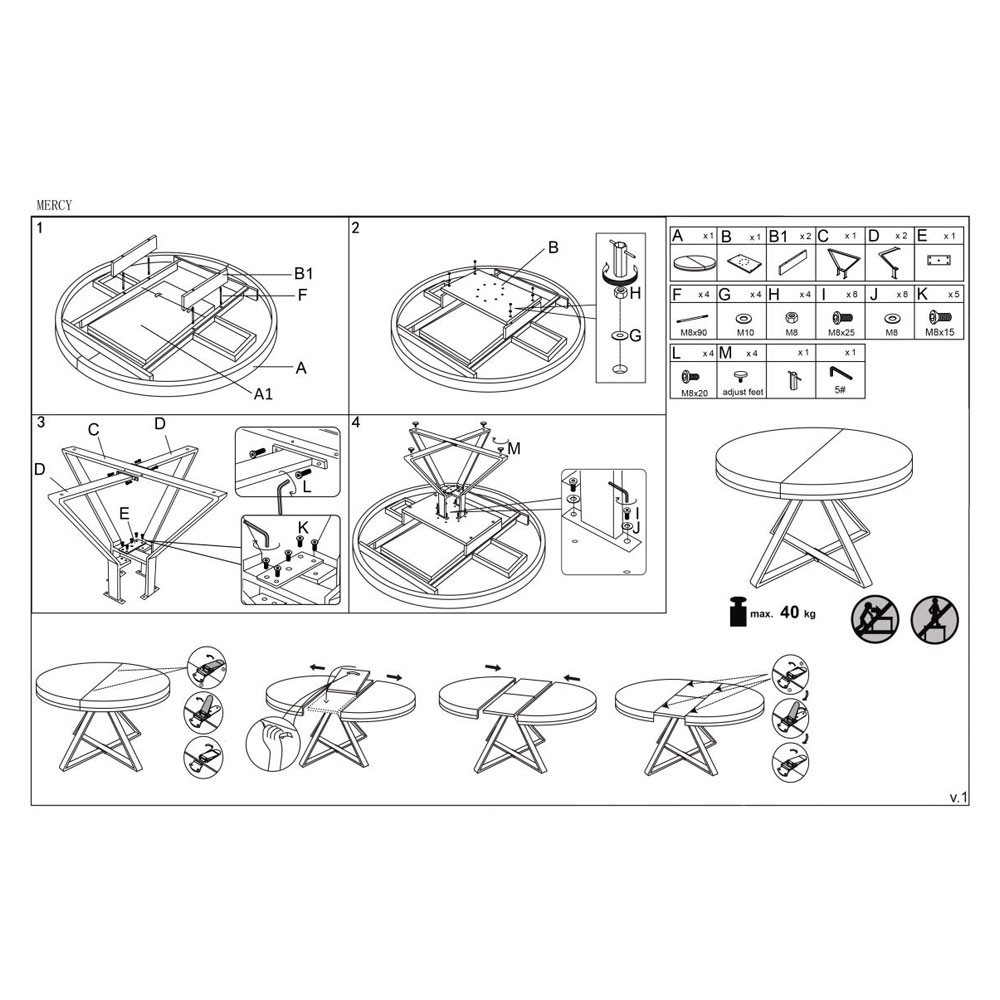 Masa poate suntine o greutate de pana la 40 kg.