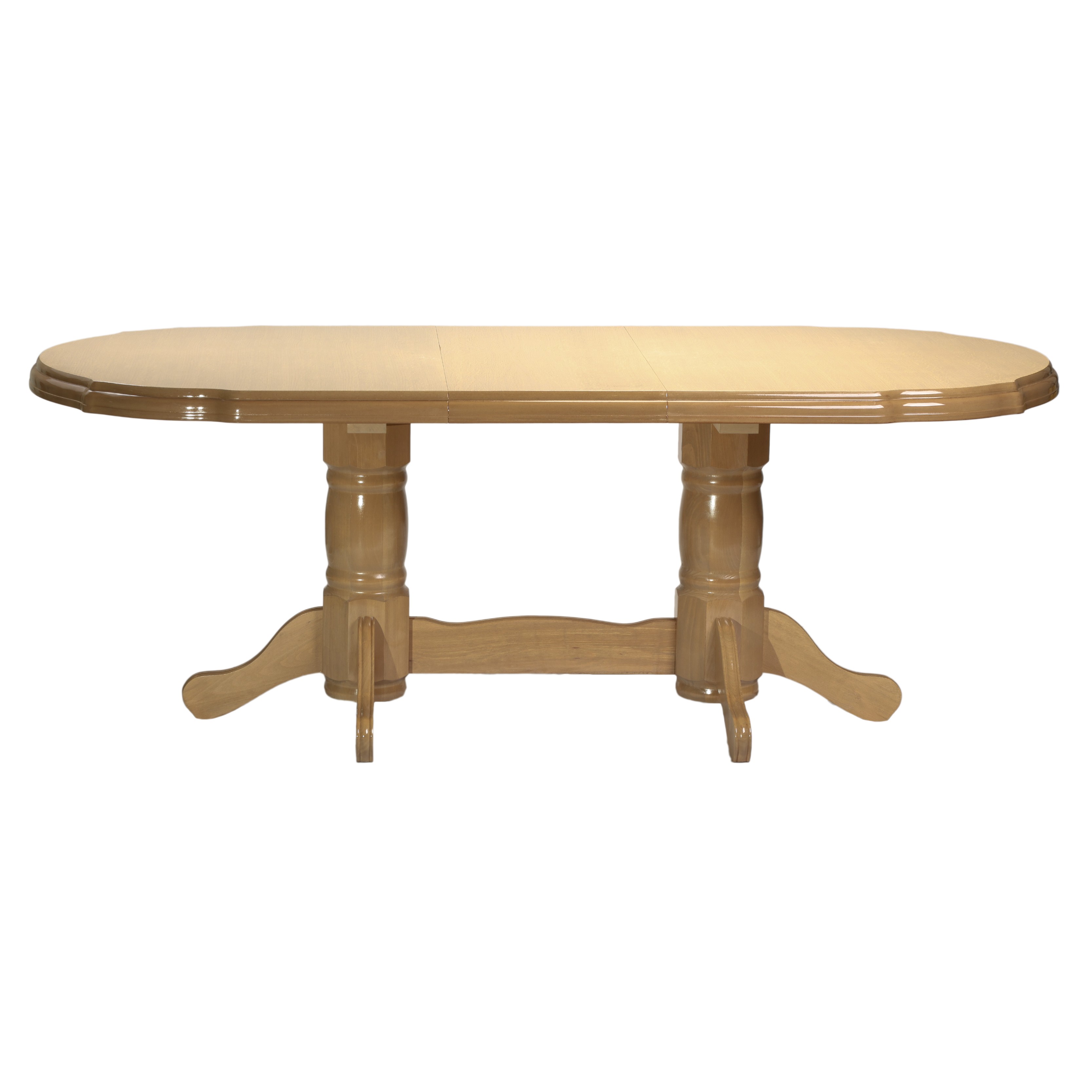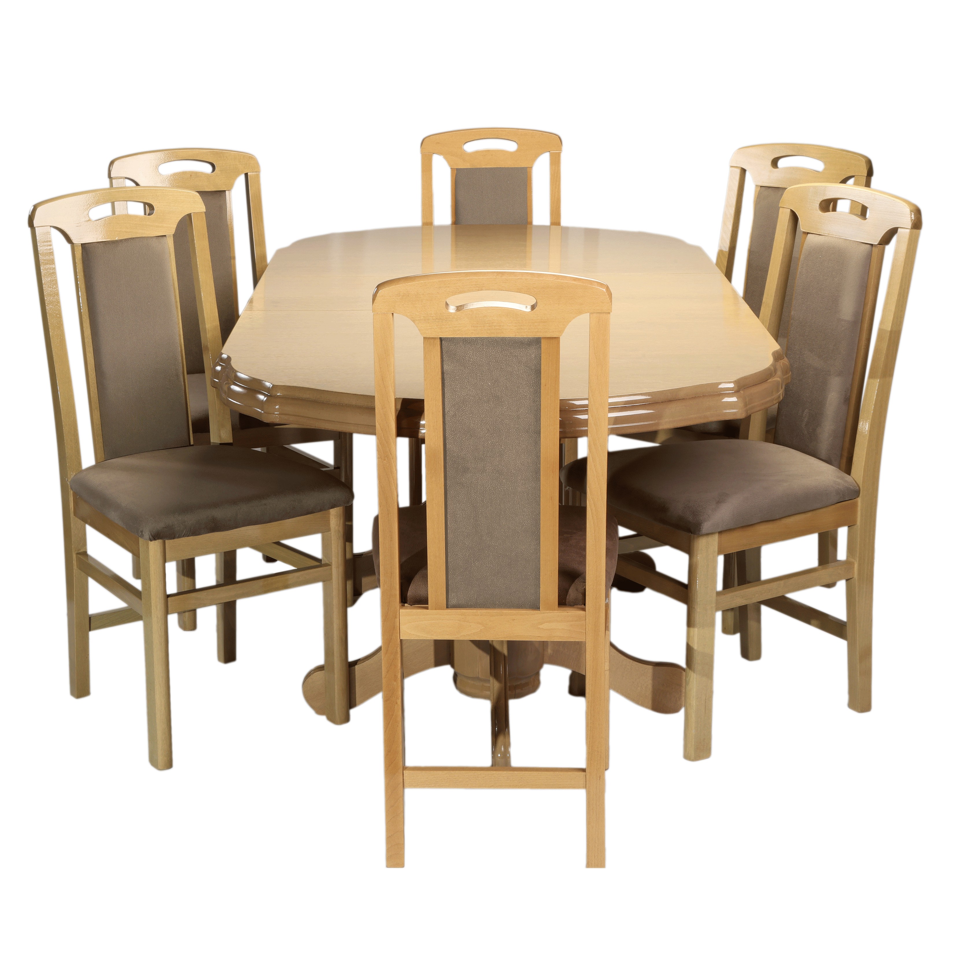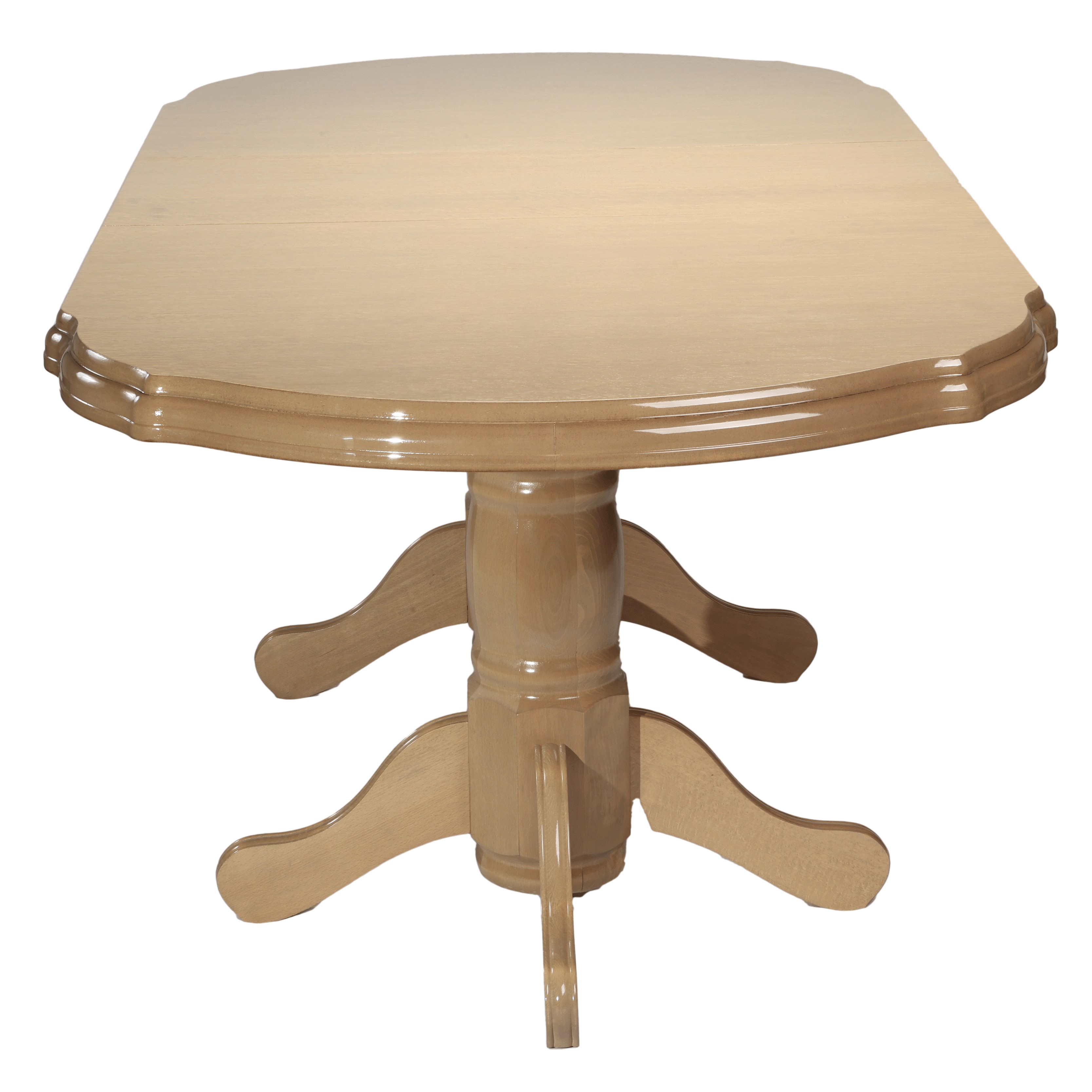 Masa extensibila cu blat din MDF furniruit lacuit  si structura din lemn masiv lacuit este o masa impunatoare, eleganta, potrivita incaperilor in stil clasic.