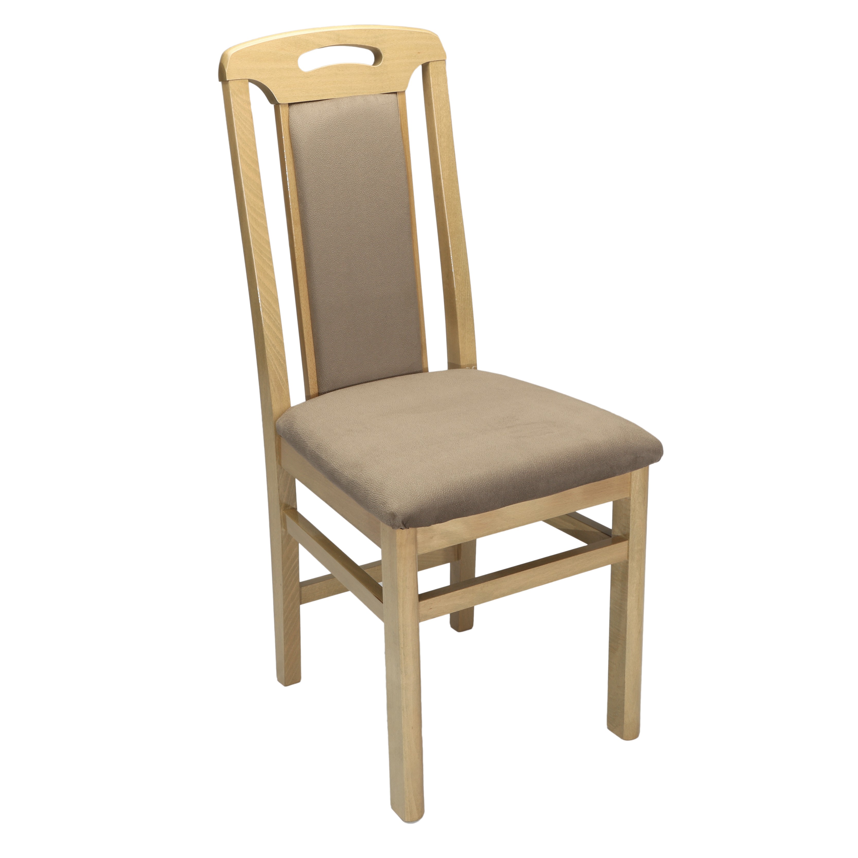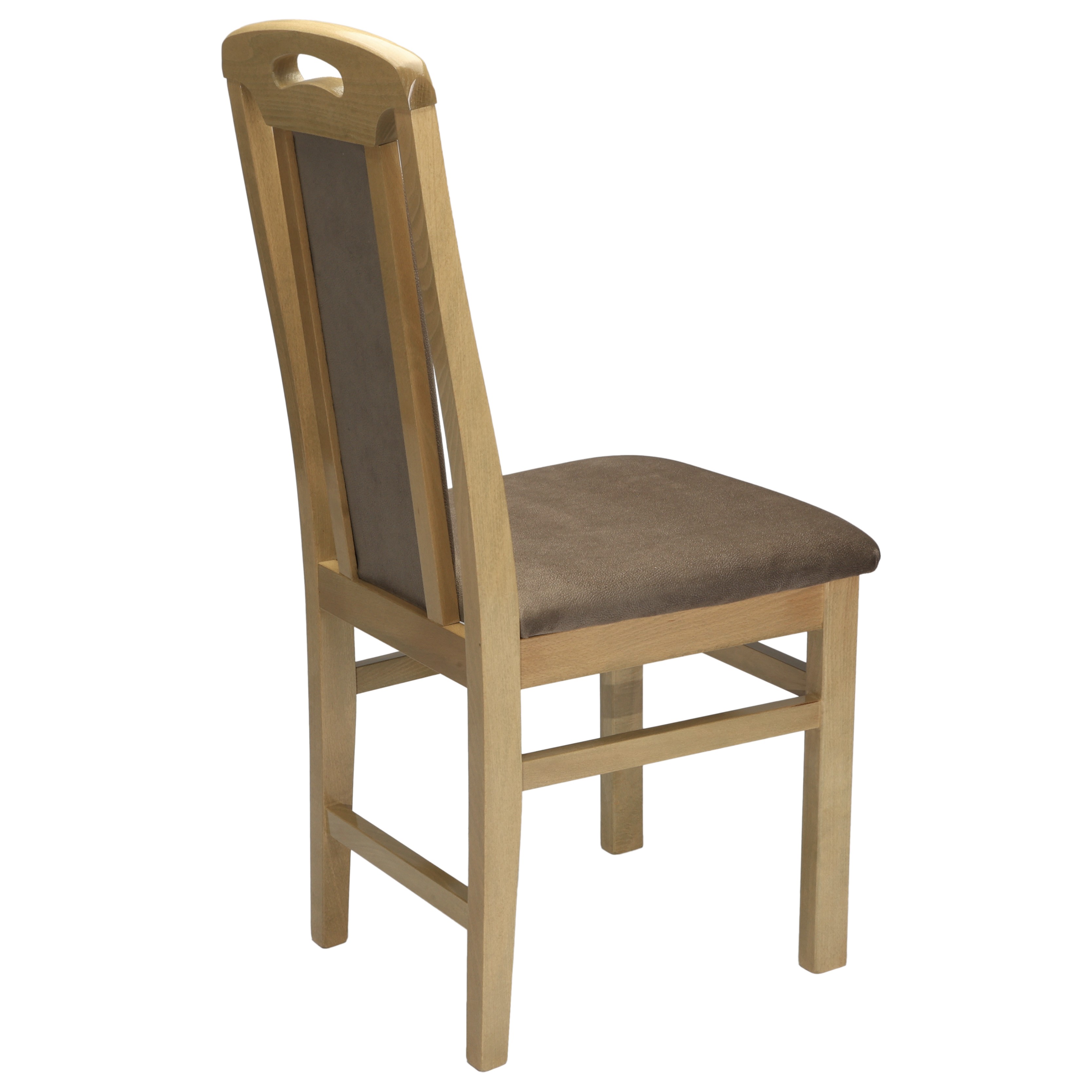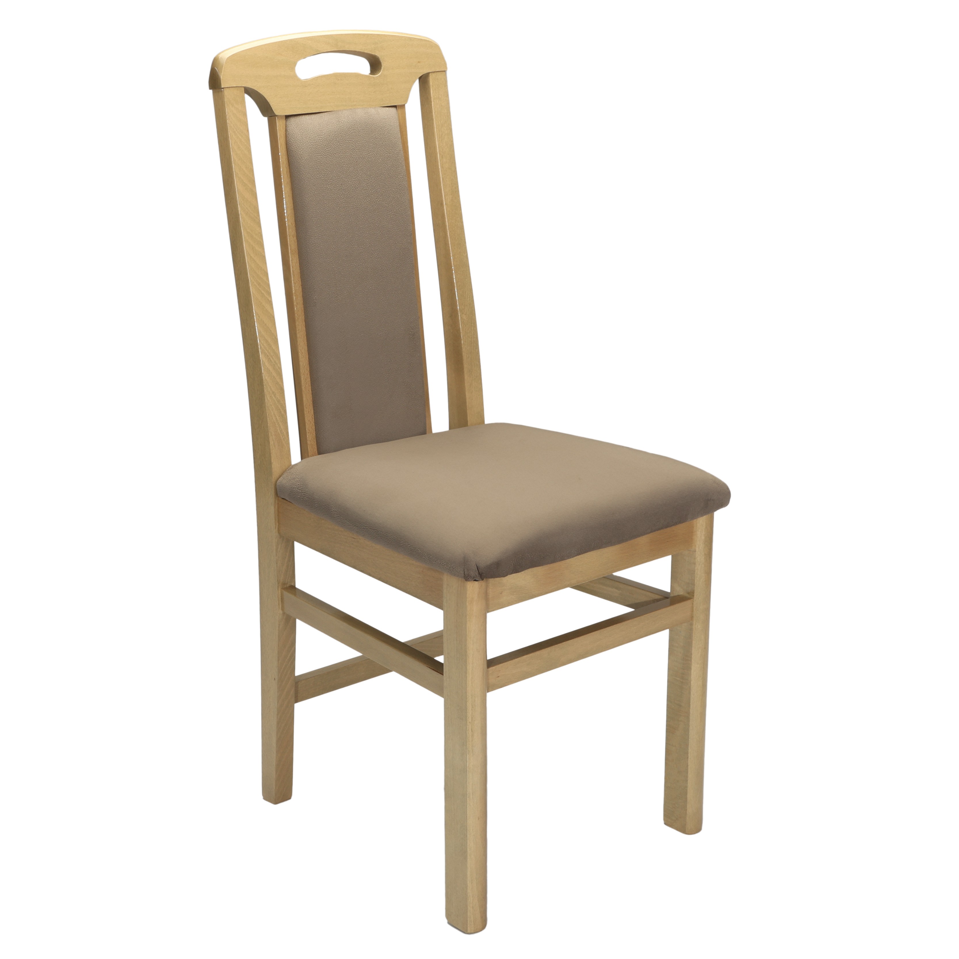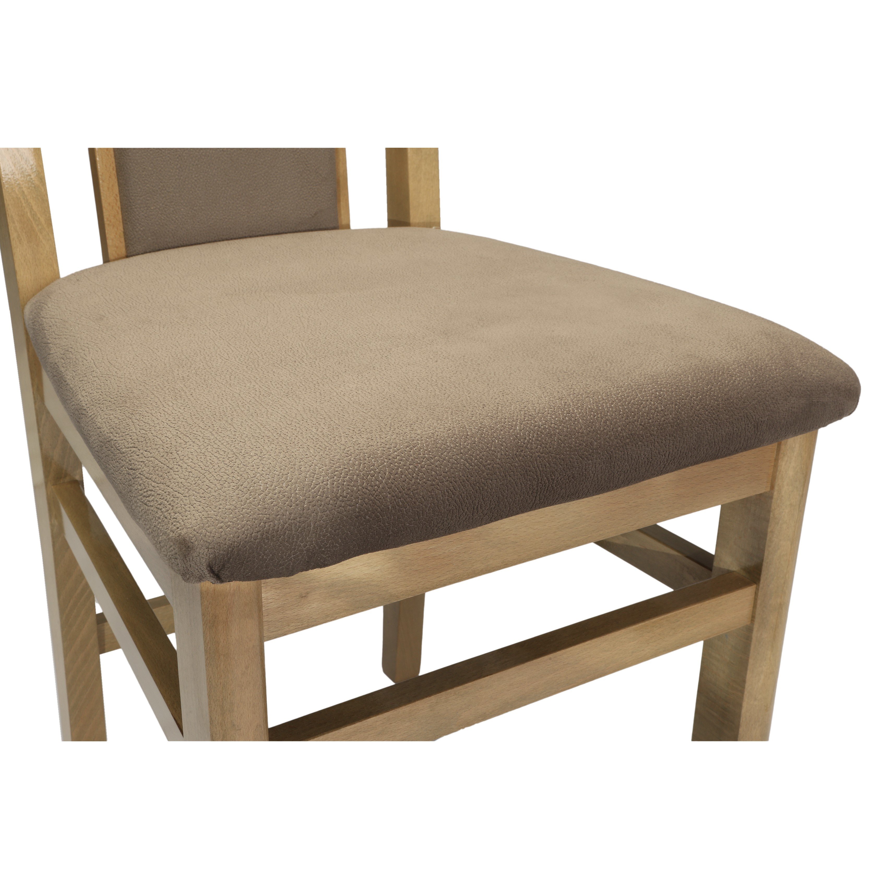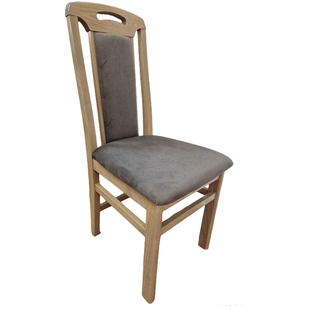 Cadrul scaunul este realizat din lemn de fag iar sezutul si spatarul partial tapitat cu stofa placuta la atingere.