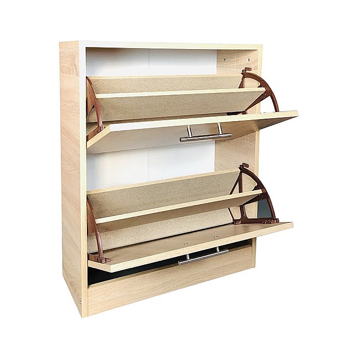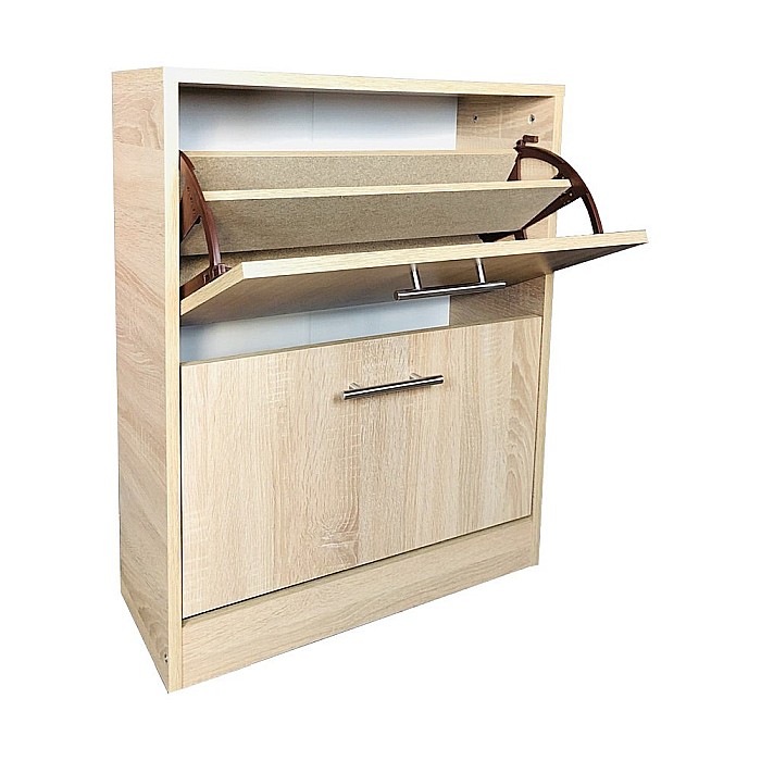 Acest pantofar cu doua sertare isi gaseste locul in spatiile mai mici ale apartamentelor si caselor. Pantofarul are 2 rafturi rabatabile care oferta spatiu suficient pentru depozitarea incaltamintei.