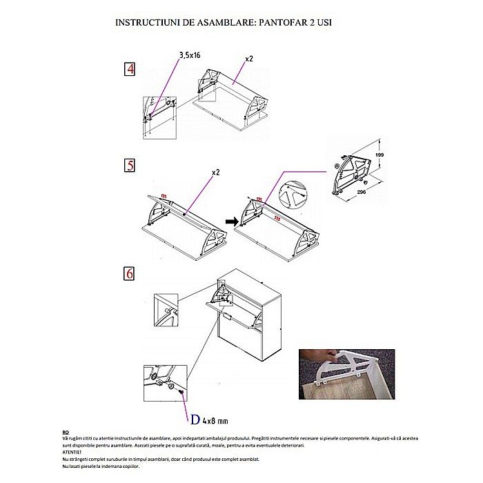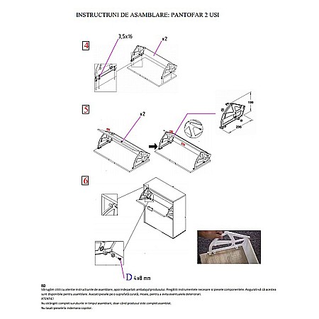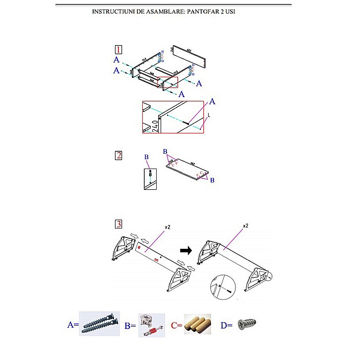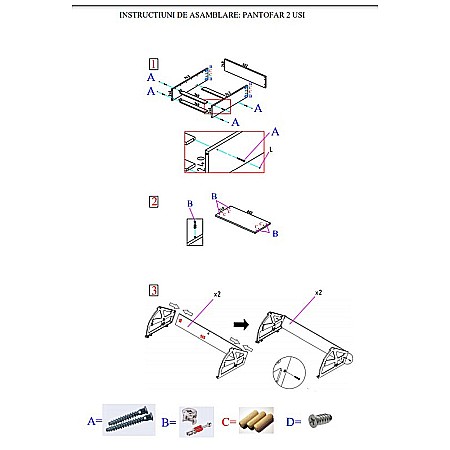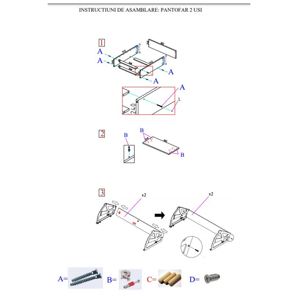 Feroneria si intructiunile de montaj sunt incluse in colet. Montajul acestui pantofar se face foarte usor, pe baza schitei de montaj.