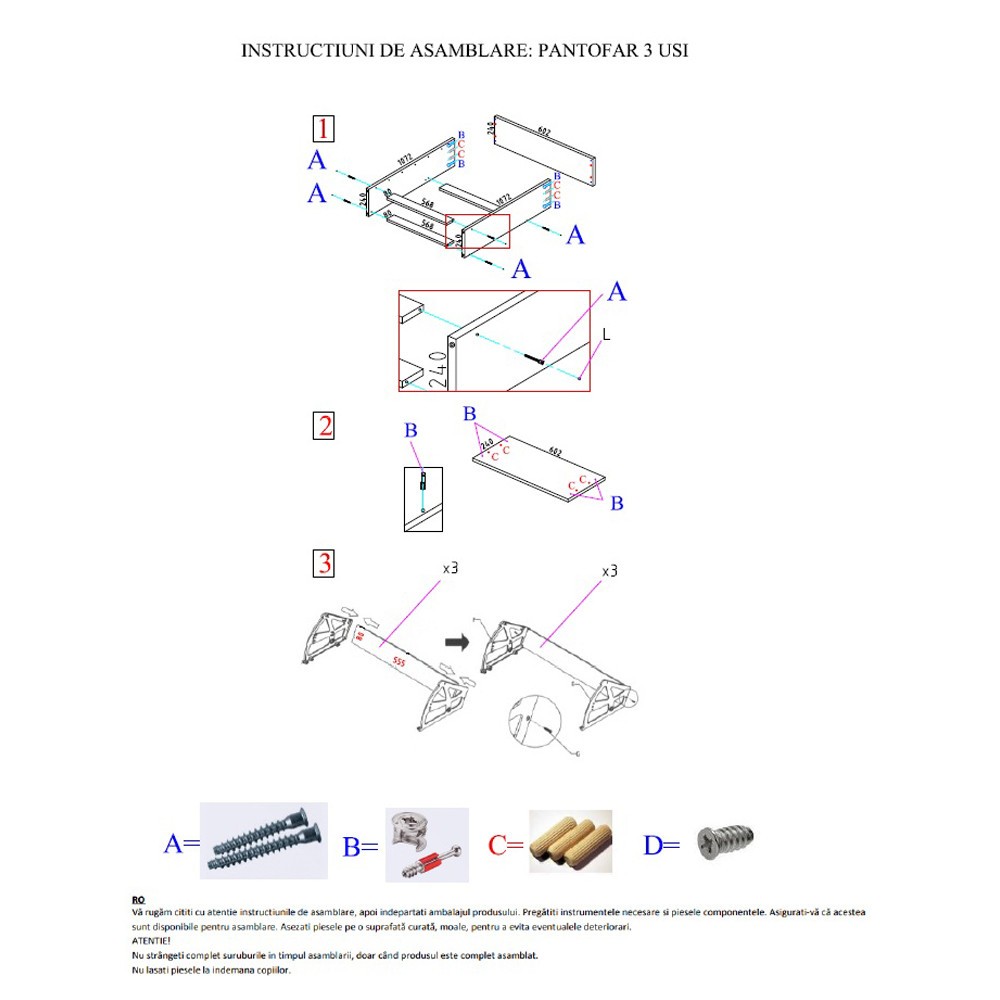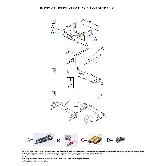Feroneria si intructiunile de montaj sunt incluse in colet. Montajul acestui pantofar se face foarte usor, pe baza schitei de montaj.