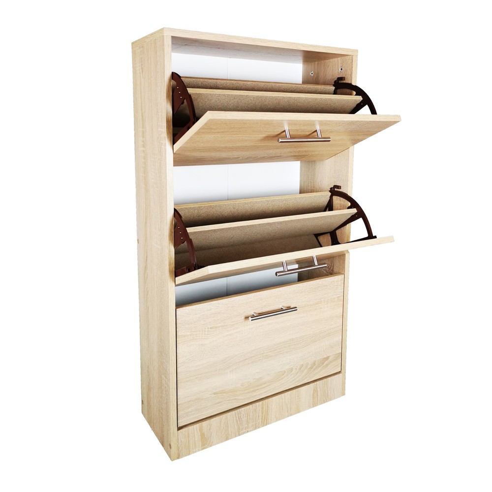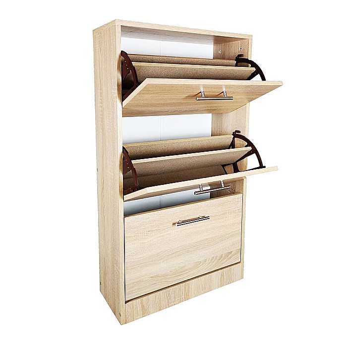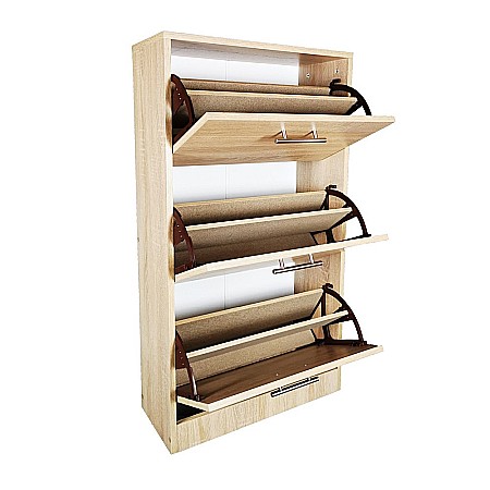 Acest pantofar cu trei sertare isi gaseste locul in spatiile mai mici ale apartamentelor si caselor. Pantofarul are 3 rafturi rabatabile care oferta spatiu suficient pentru depozitarea incaltamintei.