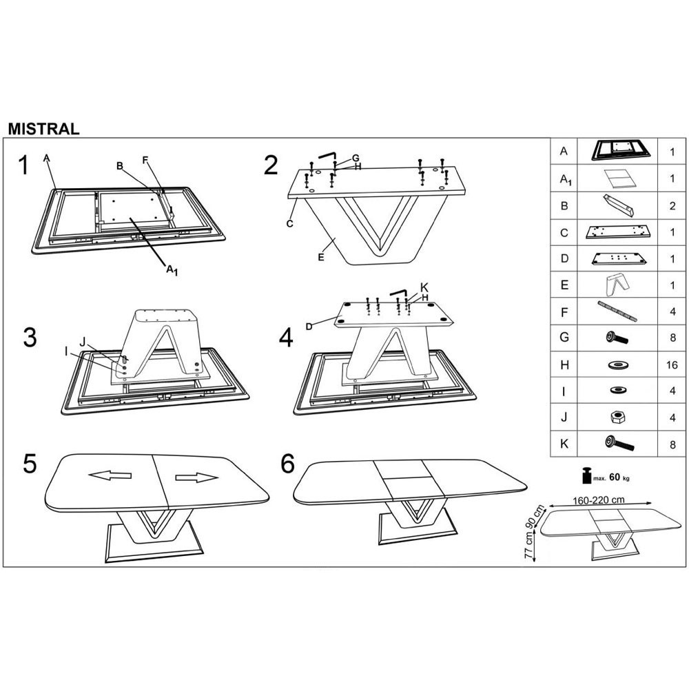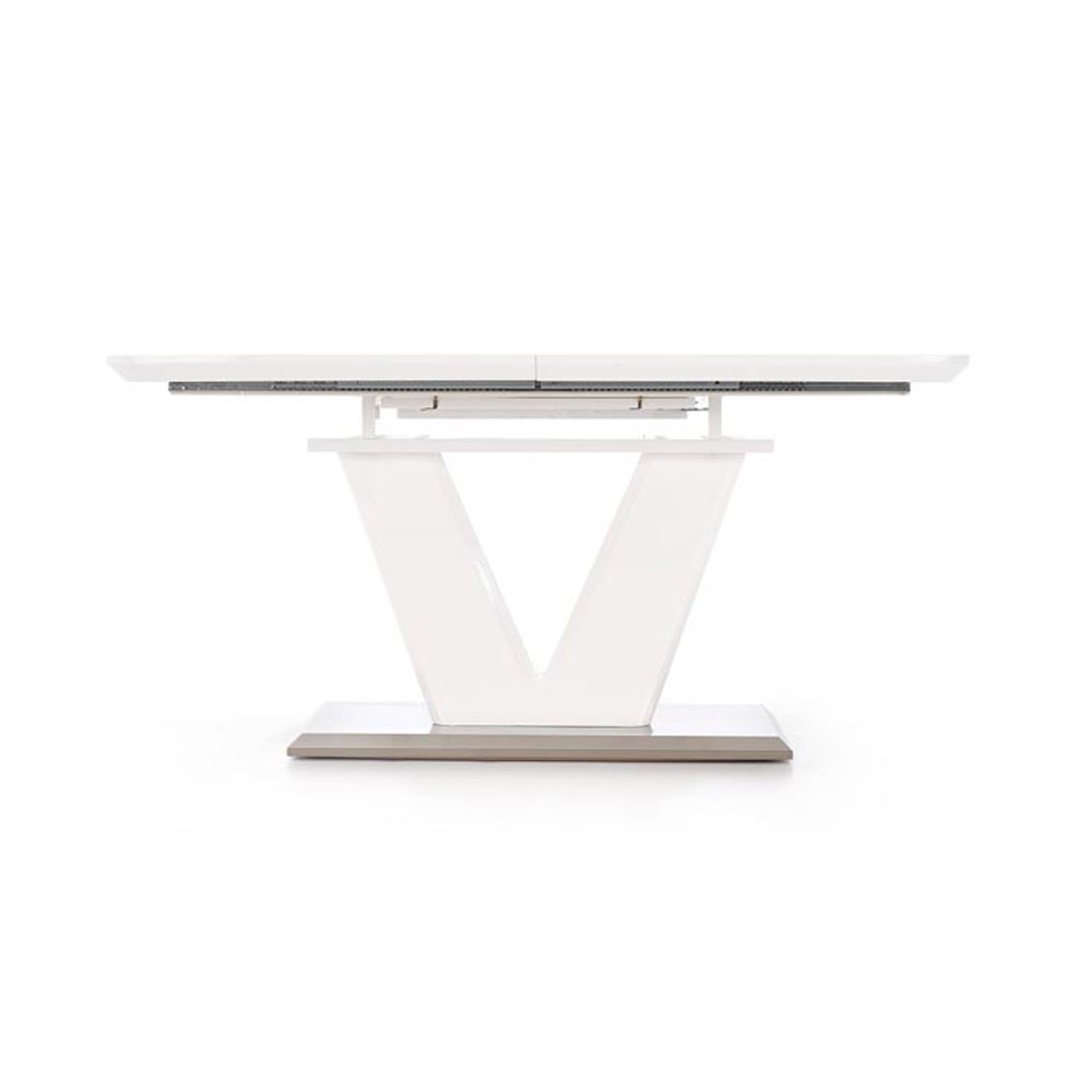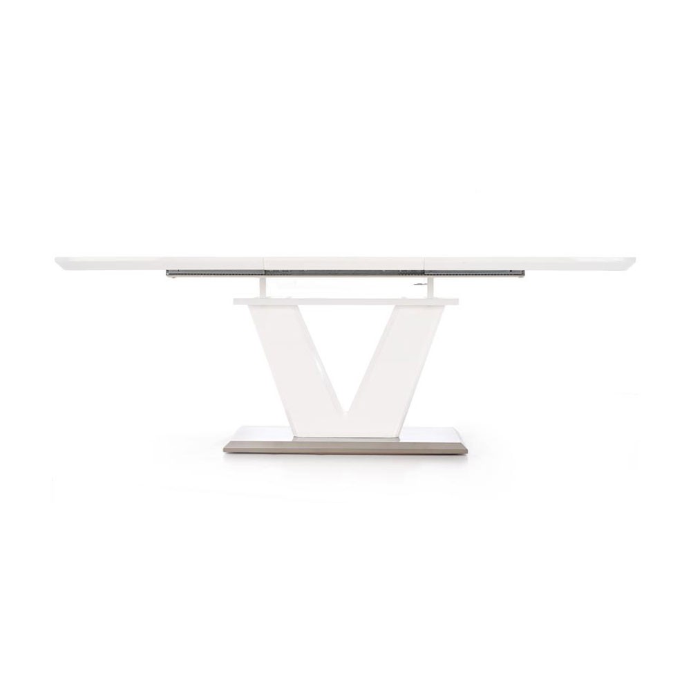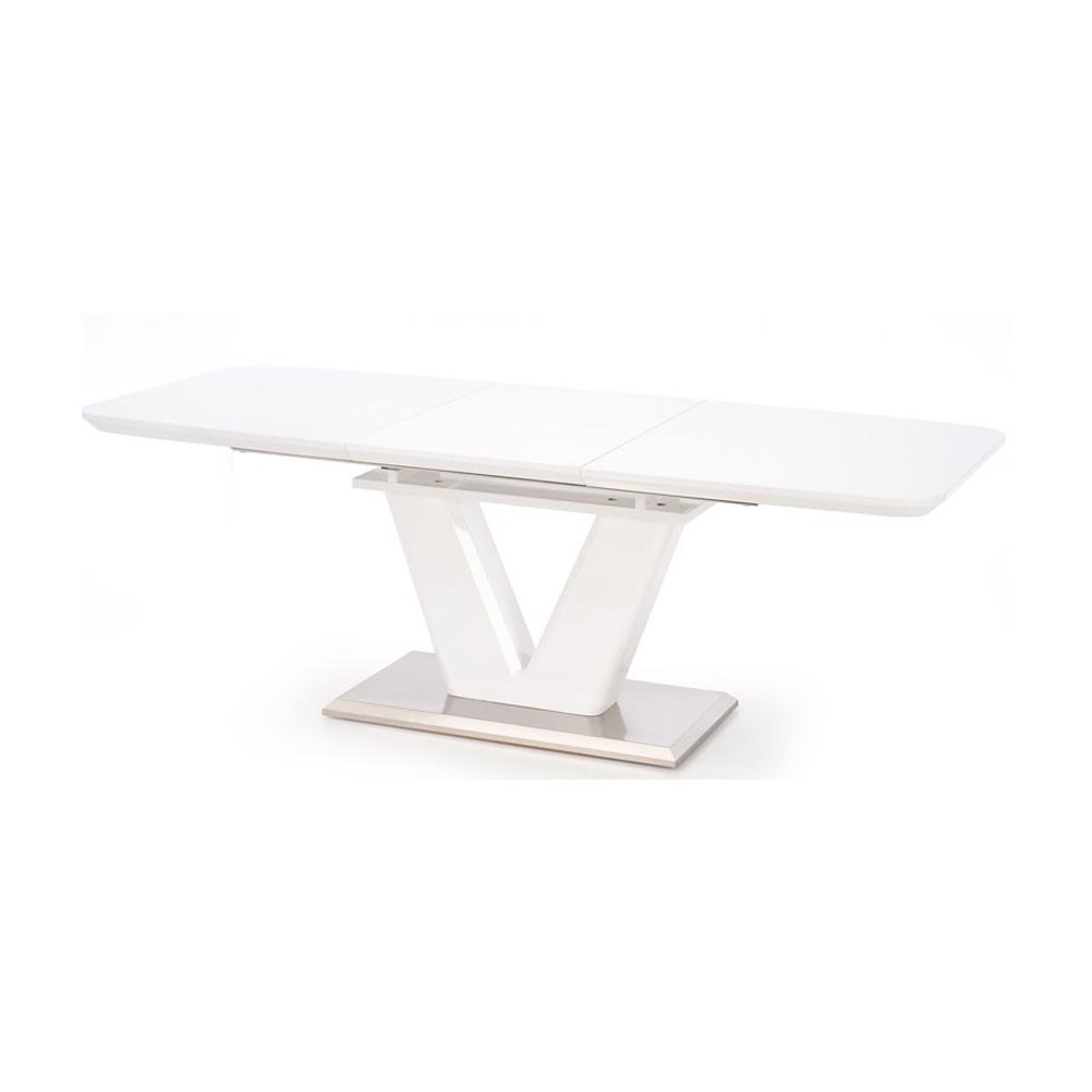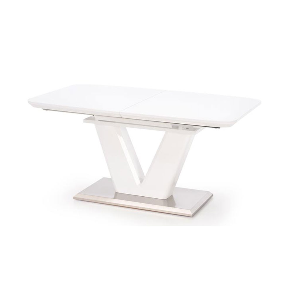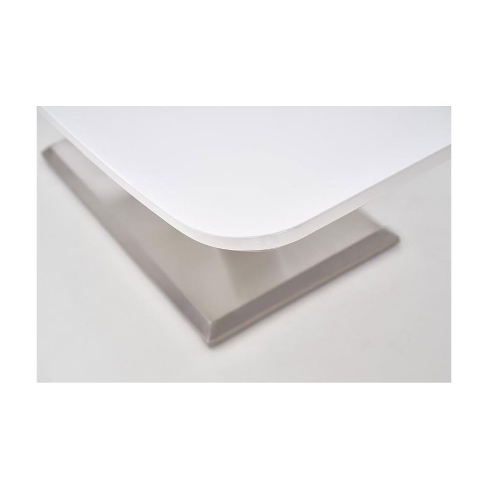 Blatul mesei este realizat din MDF lacuit iar talpa mesei este din inox.