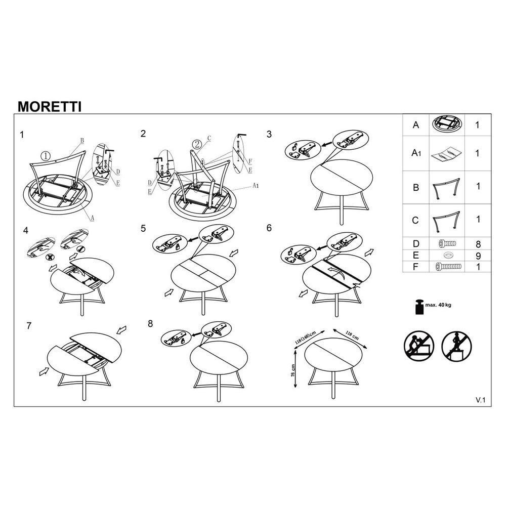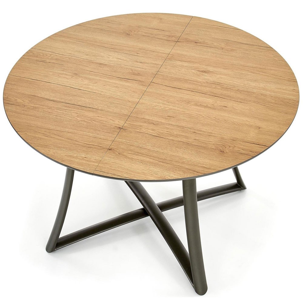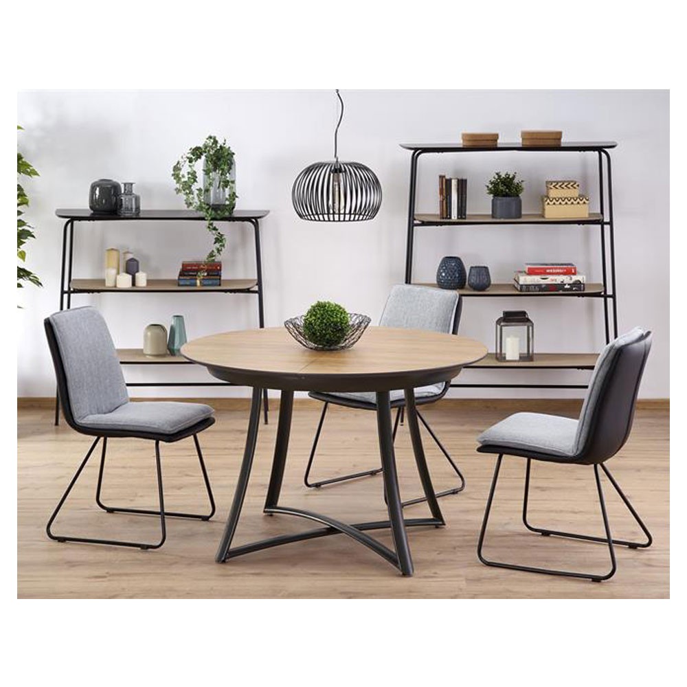 Masa extensibila living HM Moretti, blat MDF laminat, cadru metalic, 118-148x118x76 cm, 6 persoane, stejar- antracit/negru
