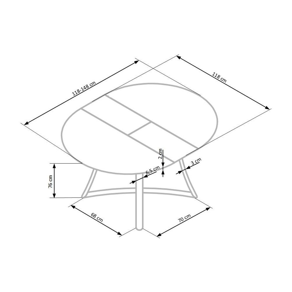 Blatul are diametrul de 118 cm, este culoarea stejarului pentru a crea un contrast placut vizual in combinatie cu picioarele de sprijin.
