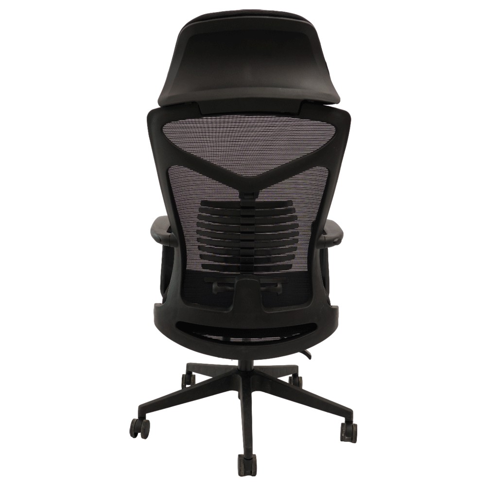 Suportul lombar si tetiera contribuie la ergonomia scaunului asigurand utilizatorului o postura corecta in timpul lucrului.