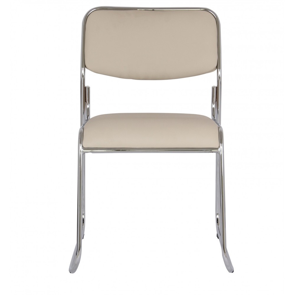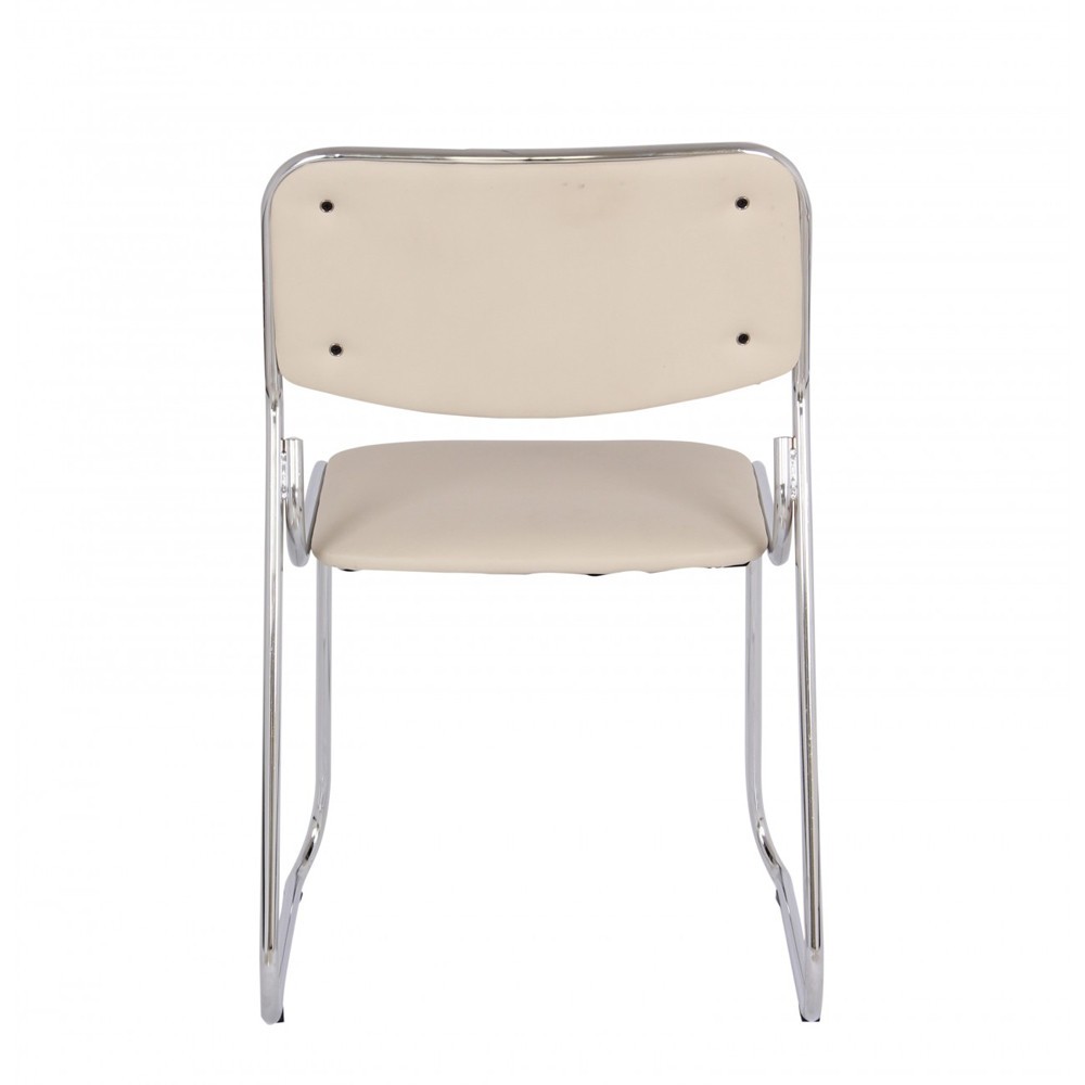 Cadrul scaunului vizitator este metalic cu finisaj cromat, iar sezutul si spatarul sunt tapitate cu piele ecologica PVC.