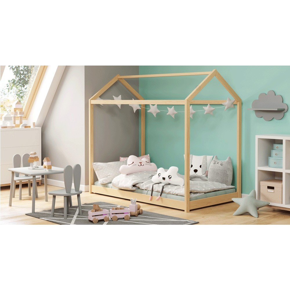 Pat copii HM Yogi se remarca datorita stucturii din lemn masiv si a designului modern. Structura casuta asigura o atmosfera de poveste in camera copilului si il va atrage la somn.