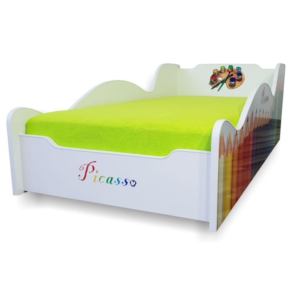 Pat pentru copii Culori, Pal melaminat, margini rotunjite PVC, 2-8 ani, 150x74x49 cm, alb