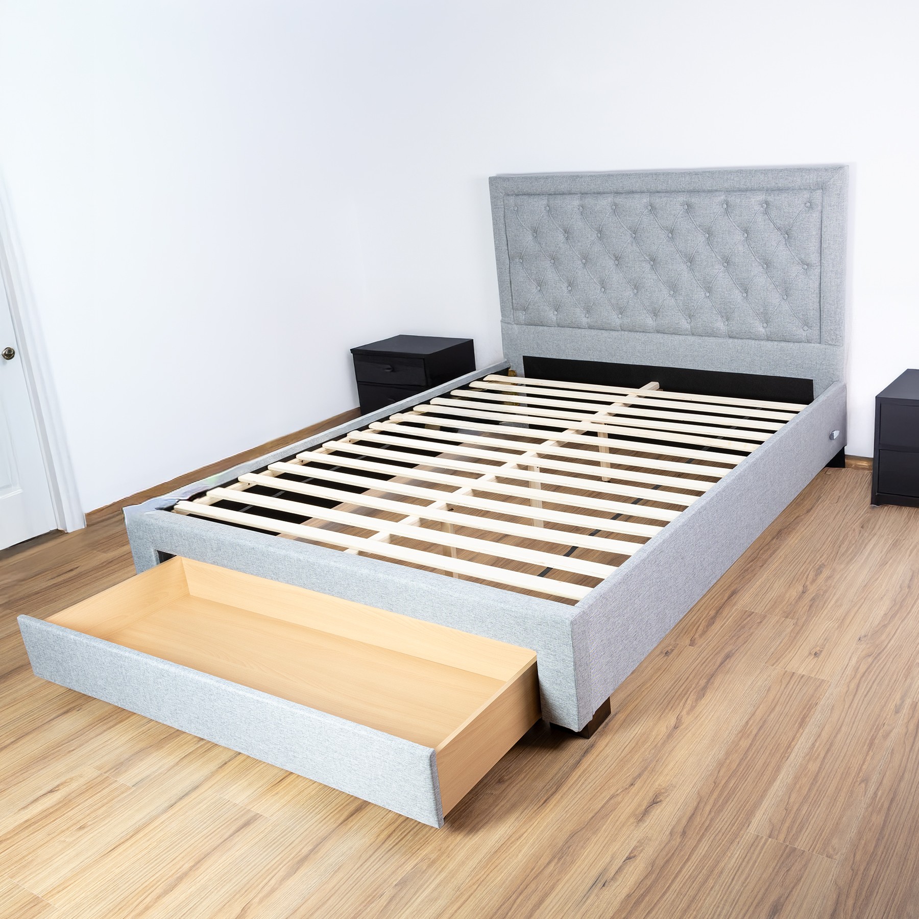 Un avantaj important al patului Austin il reprezinta sertarul frontal cu roti, ideal pentru depozitarea lenjeriei, pernelor sau a altor accesorii. Functionalitatea sa iti permite sa economisesti spatiu si sa pastrezi ordinea in dormitor.