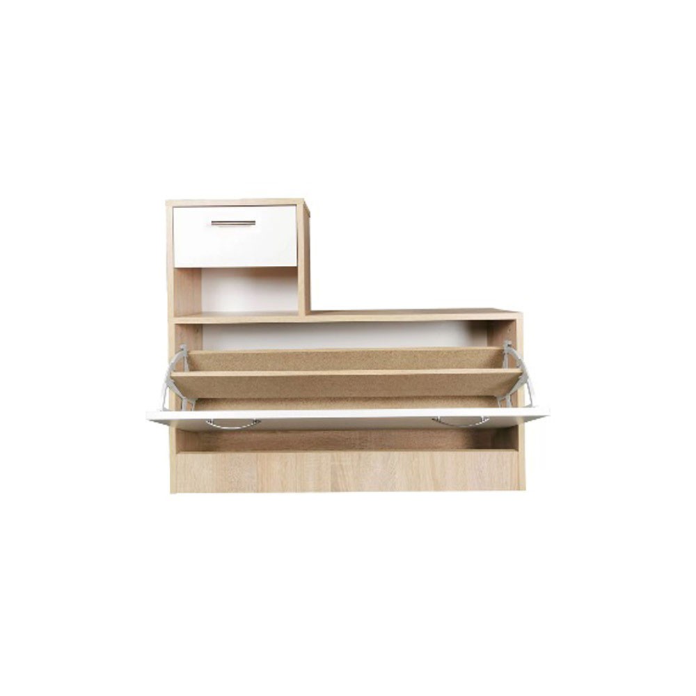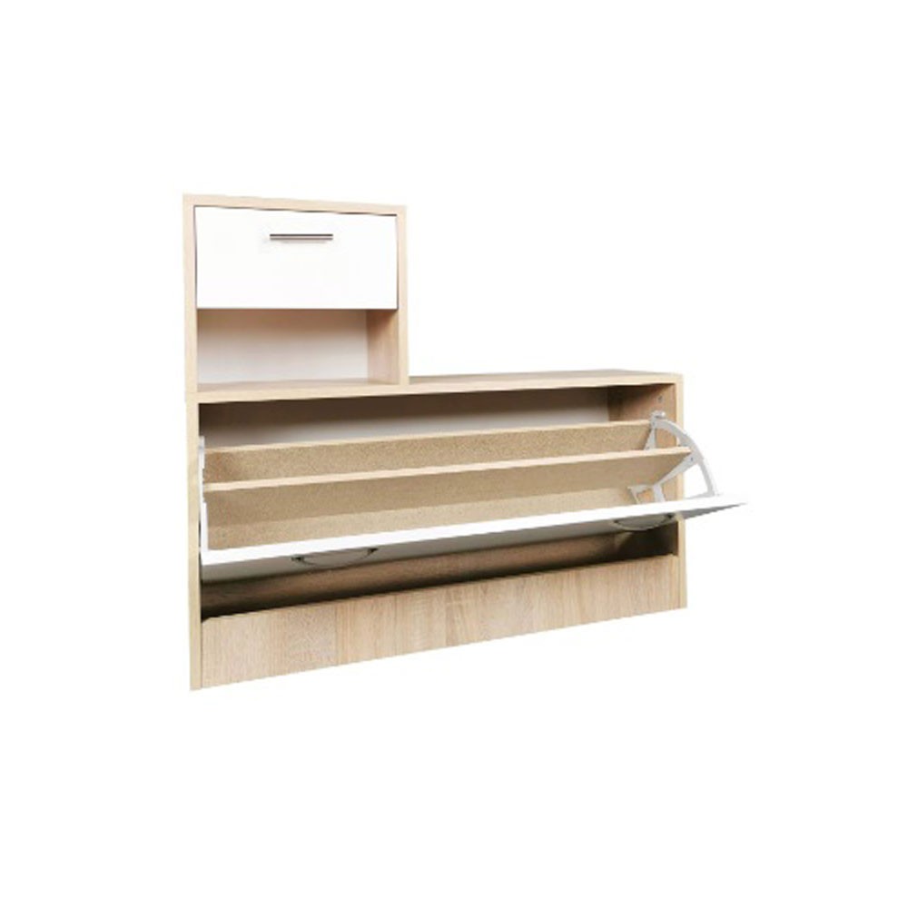 Setul de mobilier pentru hol, Filip este realizat din PAL finisat cu melamina. Ușa se deschide cu ajutorul unui sistem batant, în partea inferioară, iar interiorul este organizat cu două rafturi pentru încălțăminte, fiecare raft având capacitatea de a depozita 3 perechi de pantofi. Dimensiunile acestuia sunt 90 cm lățime, 191 cm înălțime și 24 cm adâncime, ideale pentru a utiliza la maximum și într-un mod eficient spațiul disponibil din hol. Înălțimea este cea recomandată, întrucât partea superioară a cuierului poate fi montată la înălțimea dorită.