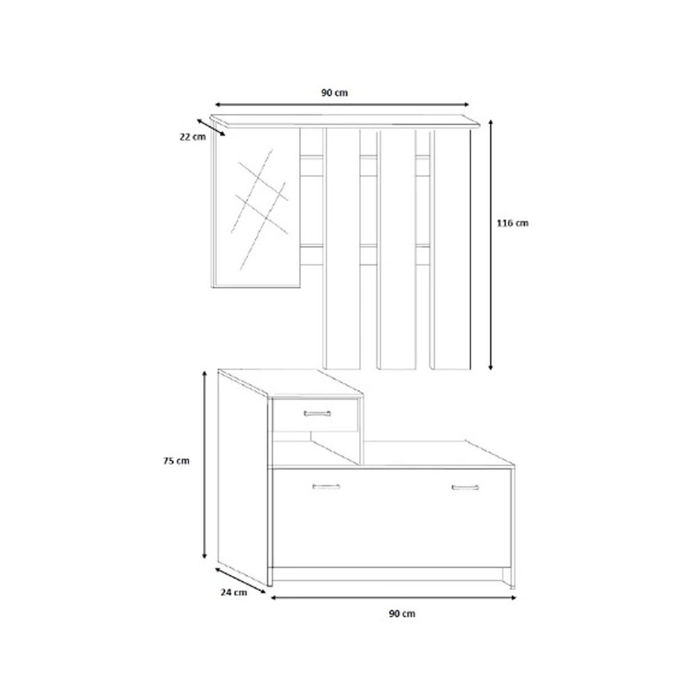 Dimensiuni exterioare set mobilier hol: latime 90 cm, adancime 24, inaltime 191 cm