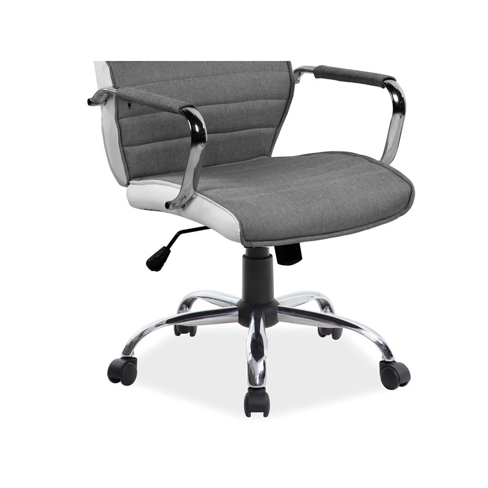 Scaunul SL Q035 se remarca prin combinatia de texturi si culori - stofa gri cu piele ecologica alba. Acest model va aduce un plus de stil si rafinament biroului dumneavoastra.