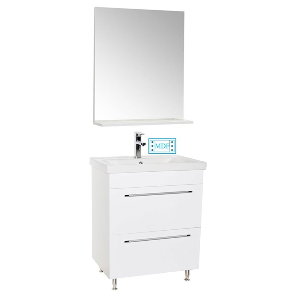 Mobilerul alcatuit din baza si lavoar GN0541 indeplineste cu succes cerintele de eleganta si functionalitate. Baza cu dimensiuni generoase (58 cm lungime, 44.5 cm latime si 81 cm inaltime) va acoperi nevoile de depozitare si de sustinere adecvata a lavoarului. Mobilierul este compartimentat in doua sertare spatioase prevazute cu sistem soft-close pentru acces facil. Primul sertar este decupat in mijloc astfel incat sa se asigura acces facil la instalatia de apa.