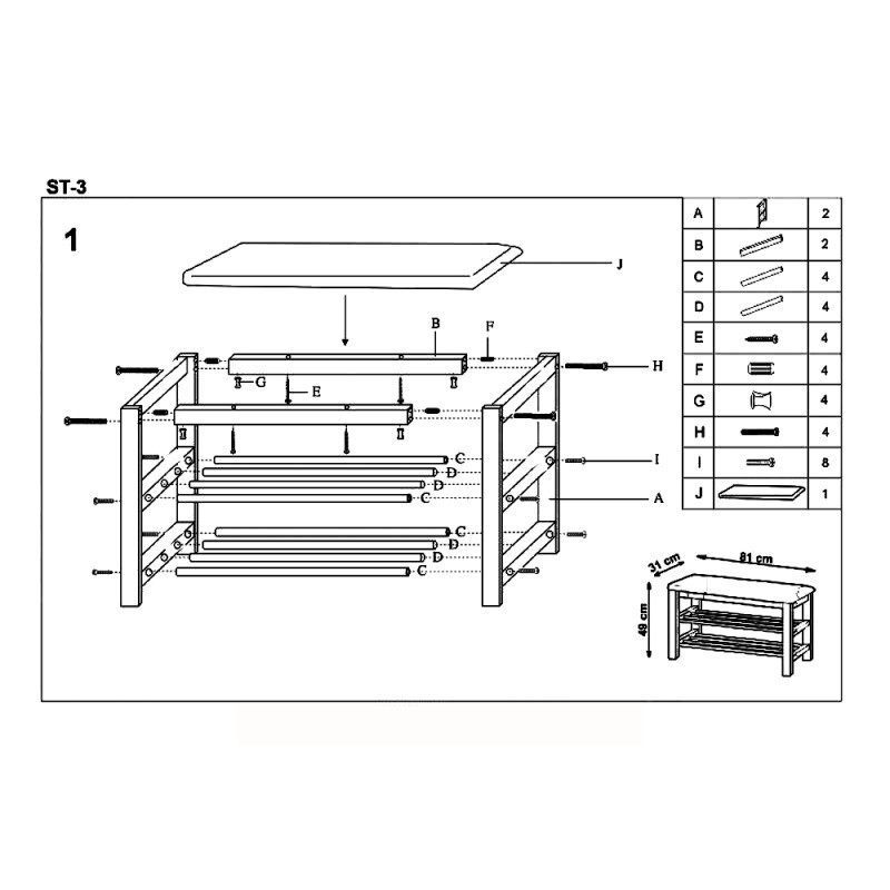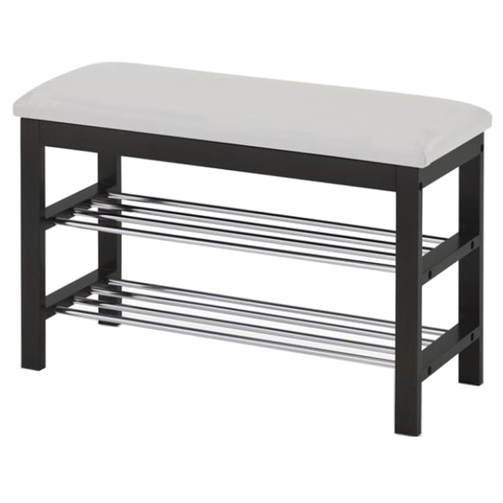 Suportul pentru pantofi HM ST3 este prevazut cu un sezut moale, tapitat cu piele ecologica si doua rafturi metalice.