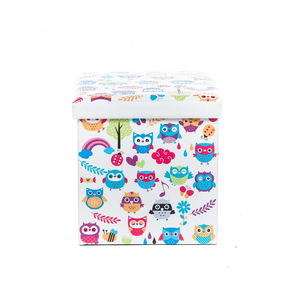 Taburete cu spatiu depozitare, Design, MDF/ Piele ecologica, 100 kg, 38 x 38, Owls New