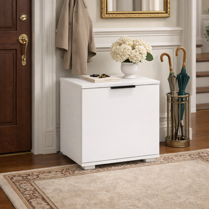Forma sa compacta permite amplasarea usoara chiar si in spatii inguste, fara a incarca vizual zona de intrare. In acelasi timp, ofera suficient spatiu pentru depozitarea incaltamintei de zi cu zi, pastrand holul curat si ordonat.