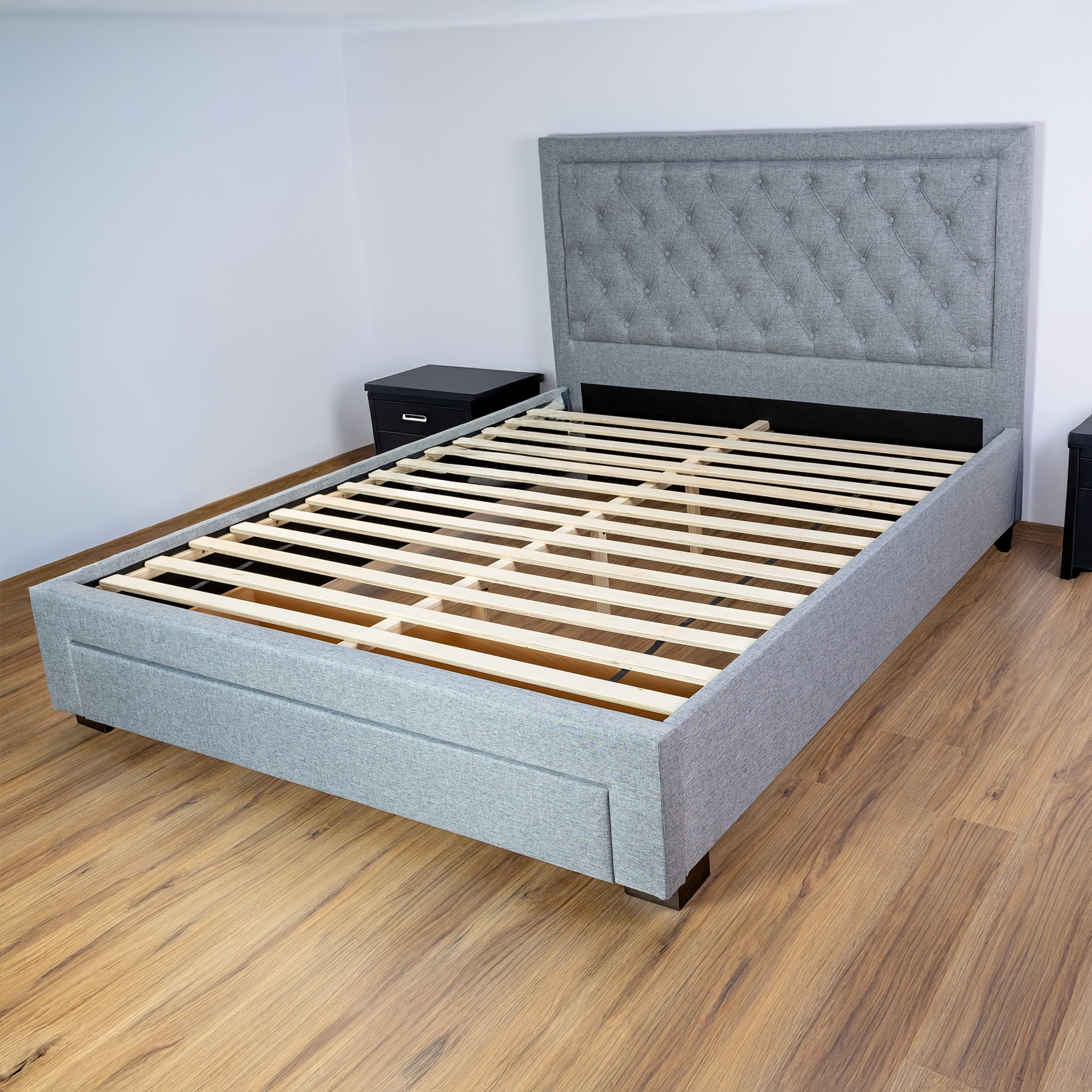 Pat tapitat Austin 160x200 cu sertar frontal + Saltea Optim Silver – confort si stil modern